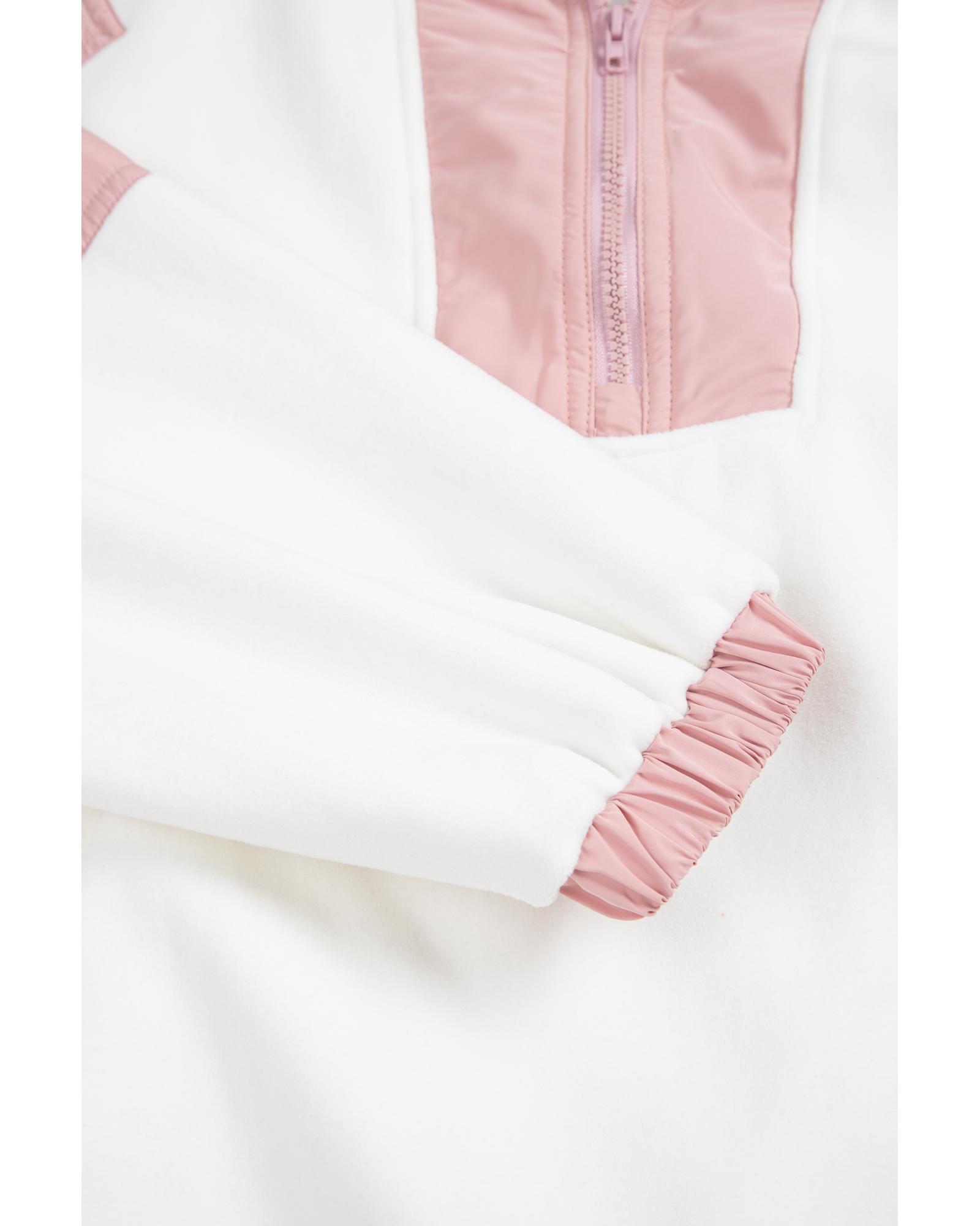 Light French Beige Colorblock Patchwork Half Zip Oversized Sherpa Hoodie – M