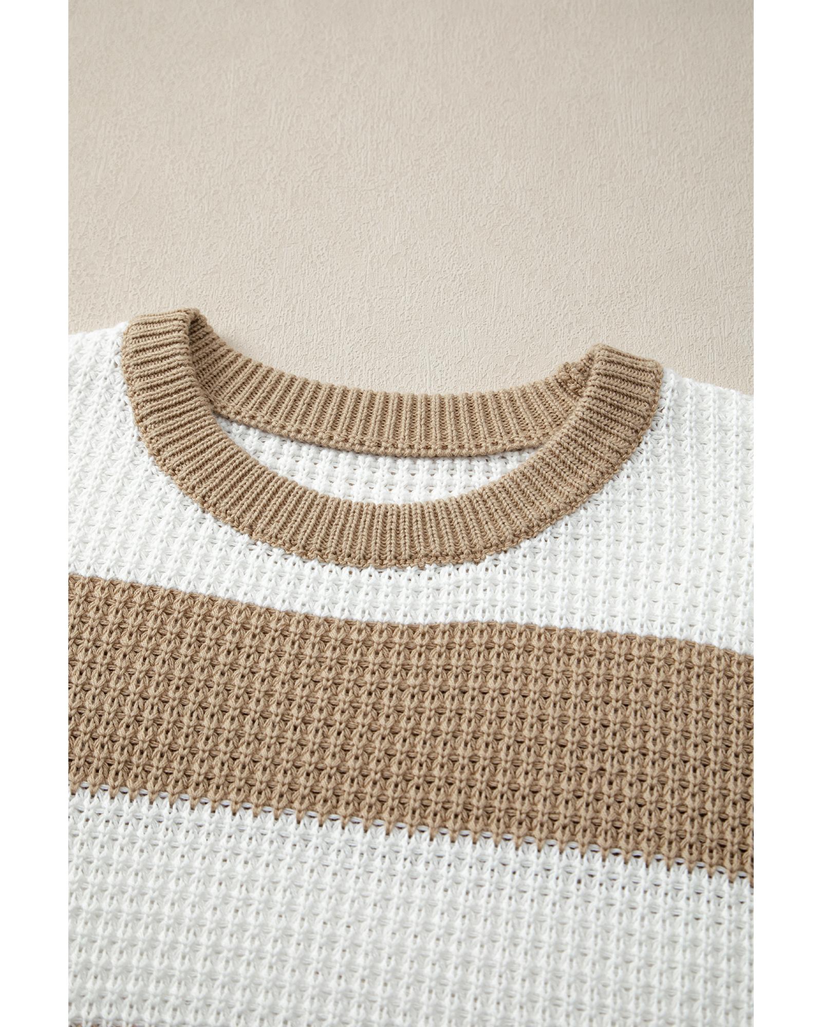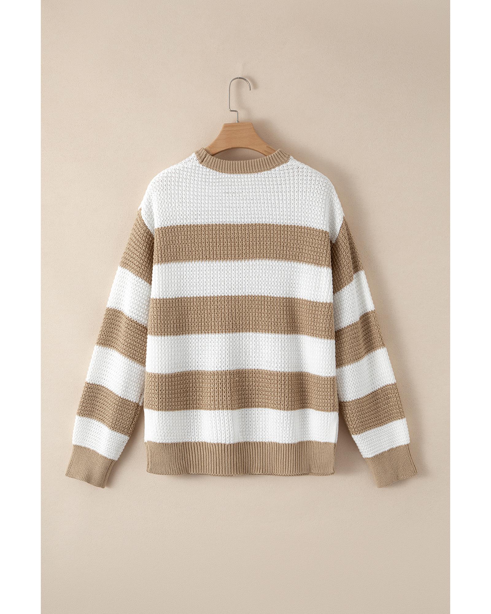 Light French Beige Colorblock Striped Drop Shoulder Side Slit Sweater – M