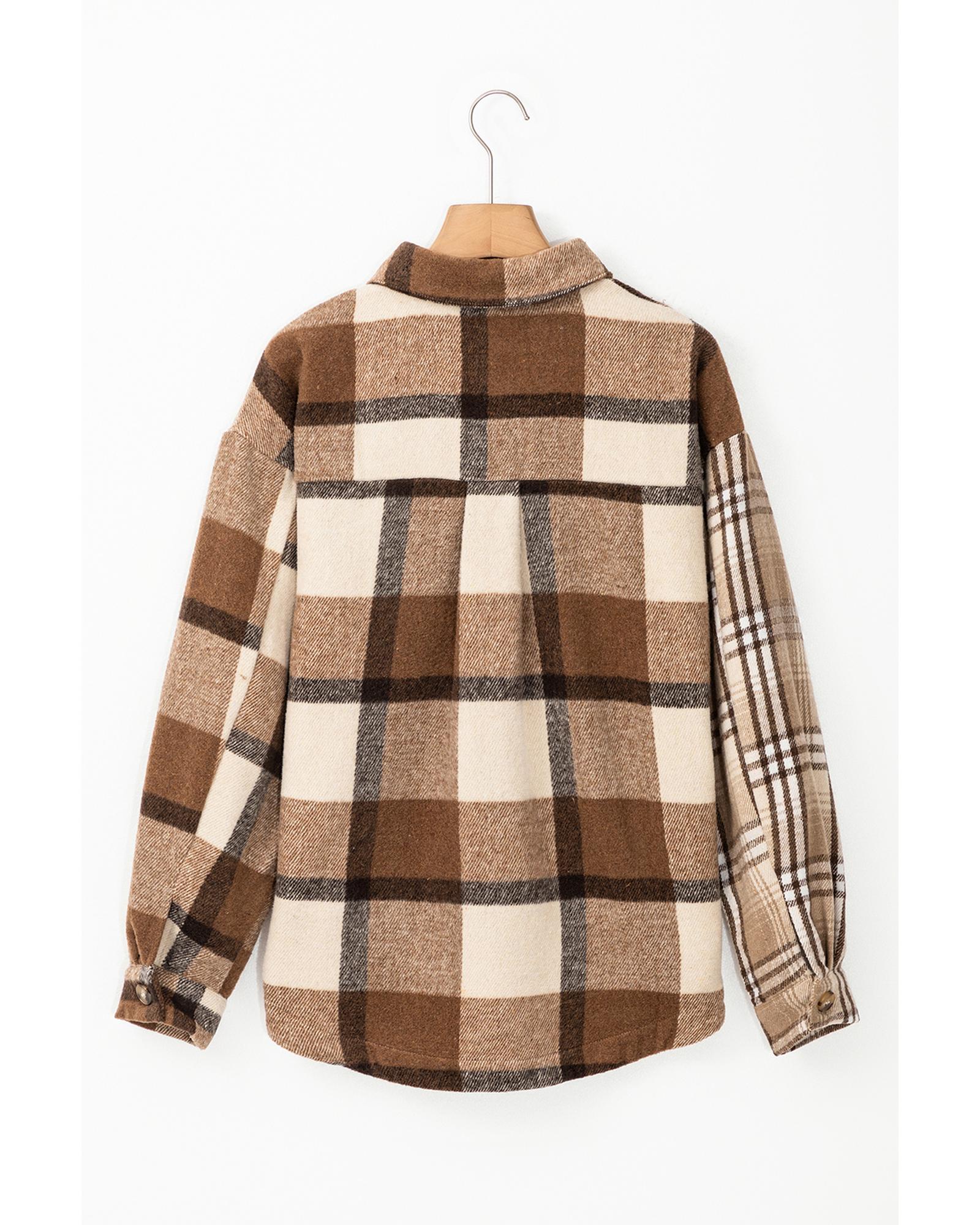 Light French Beige Flannel Plaid Double Flap Pocket Shacket – L
