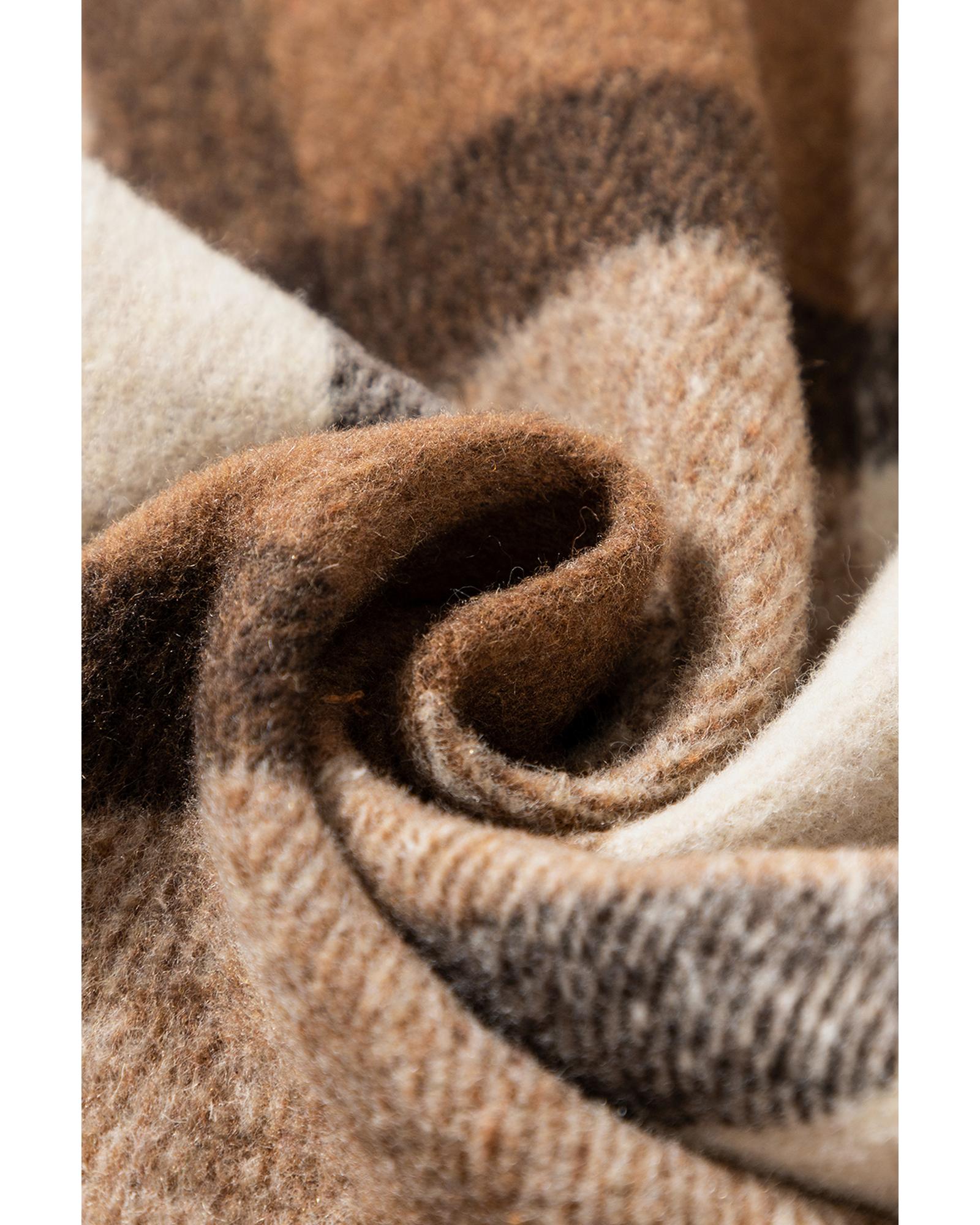 Light French Beige Flannel Plaid Double Flap Pocket Shacket - M
