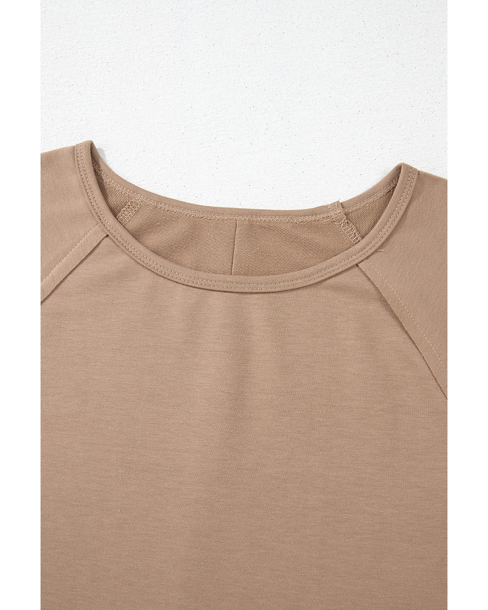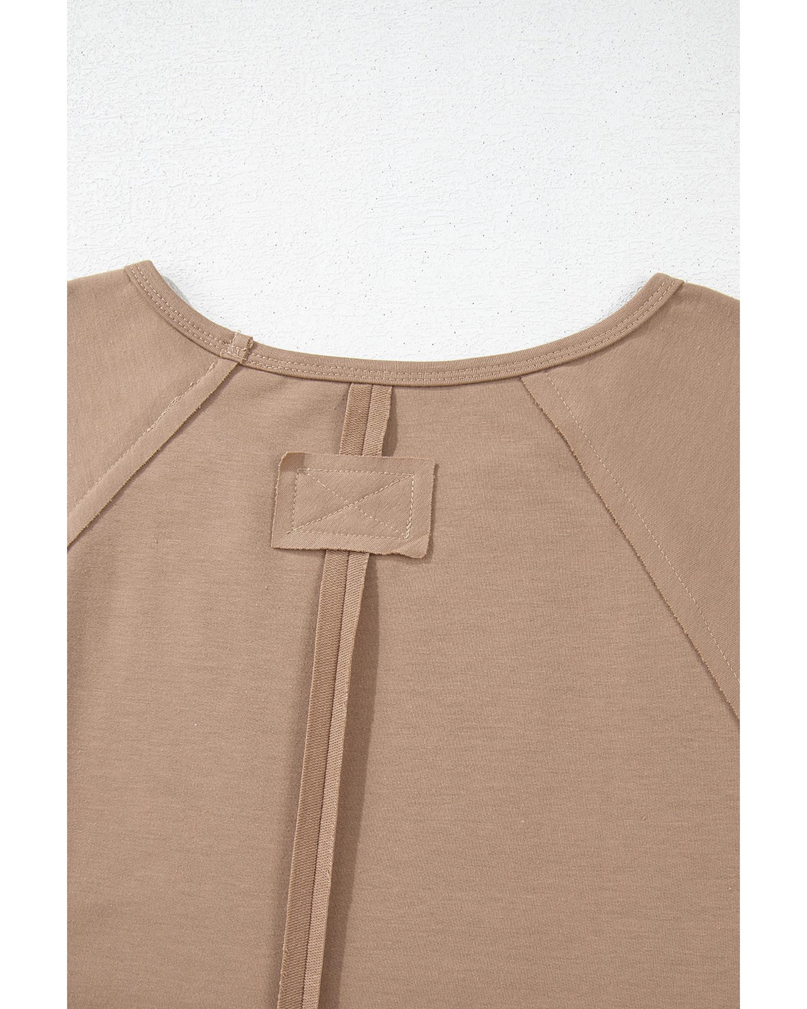 Light French Beige Flower Striped Patchwork Puff Sleeve Loose Sweatshirt – 4X