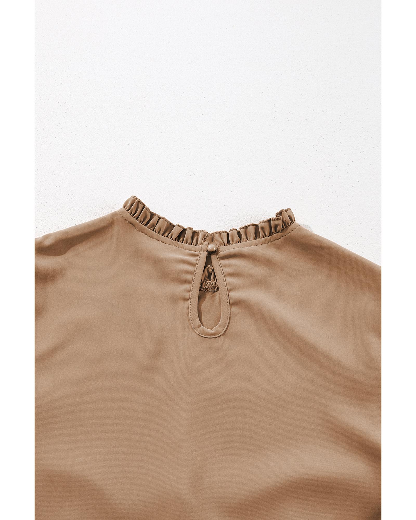 Light French Beige Frilled Collar Ruffled Shoulder Tiered Dress - L