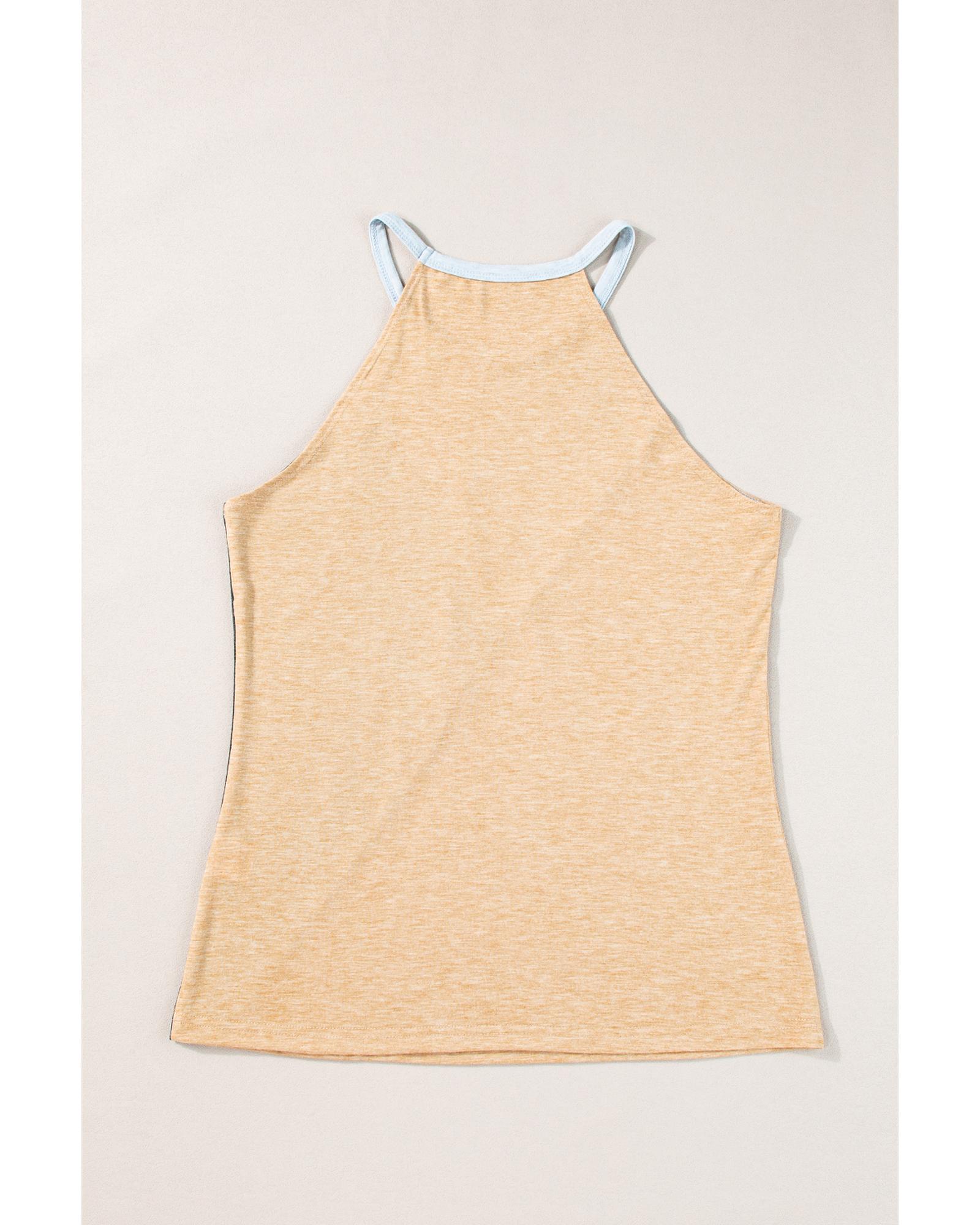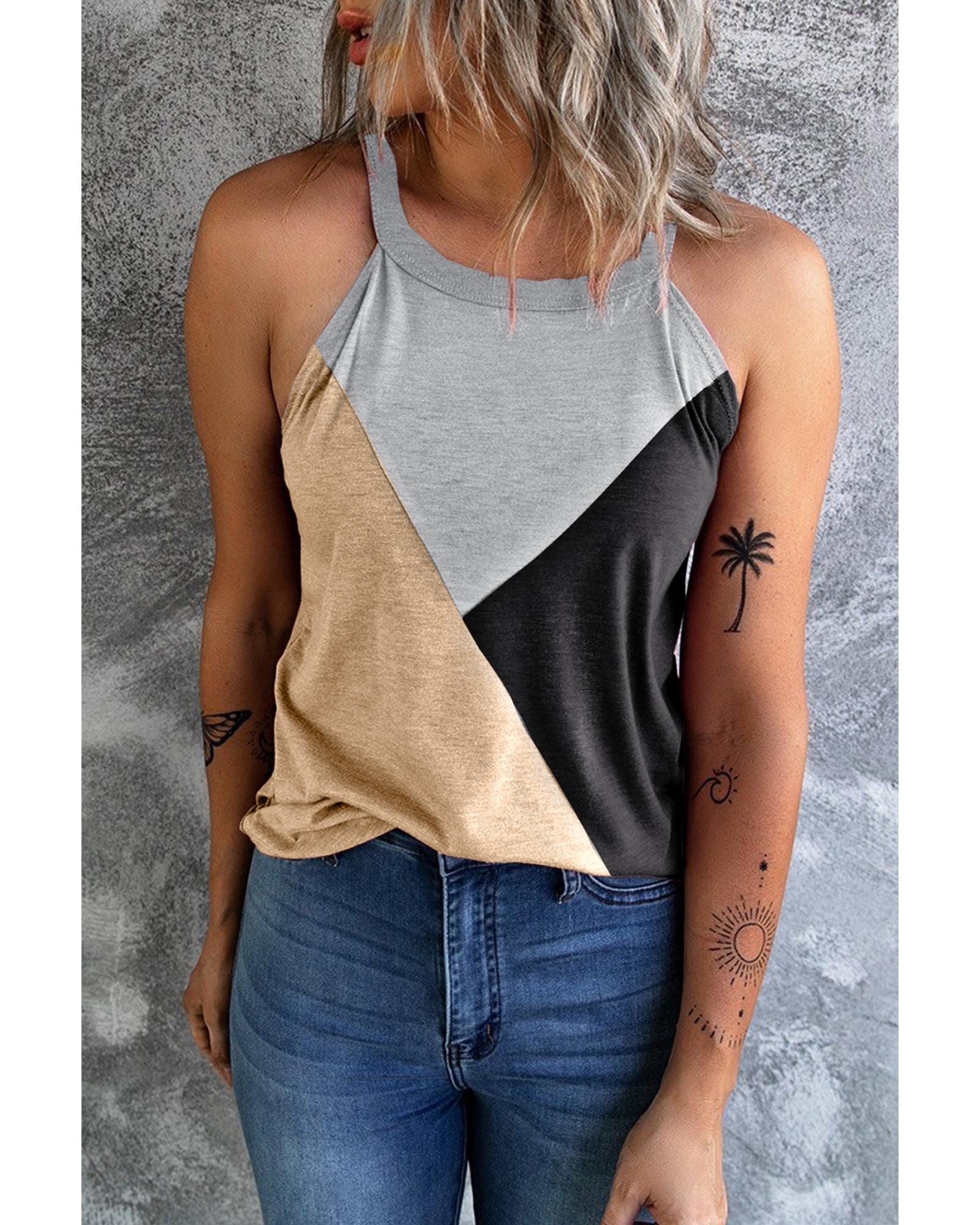 Light French Beige Geometric Color Block Sleeveless Top – XL