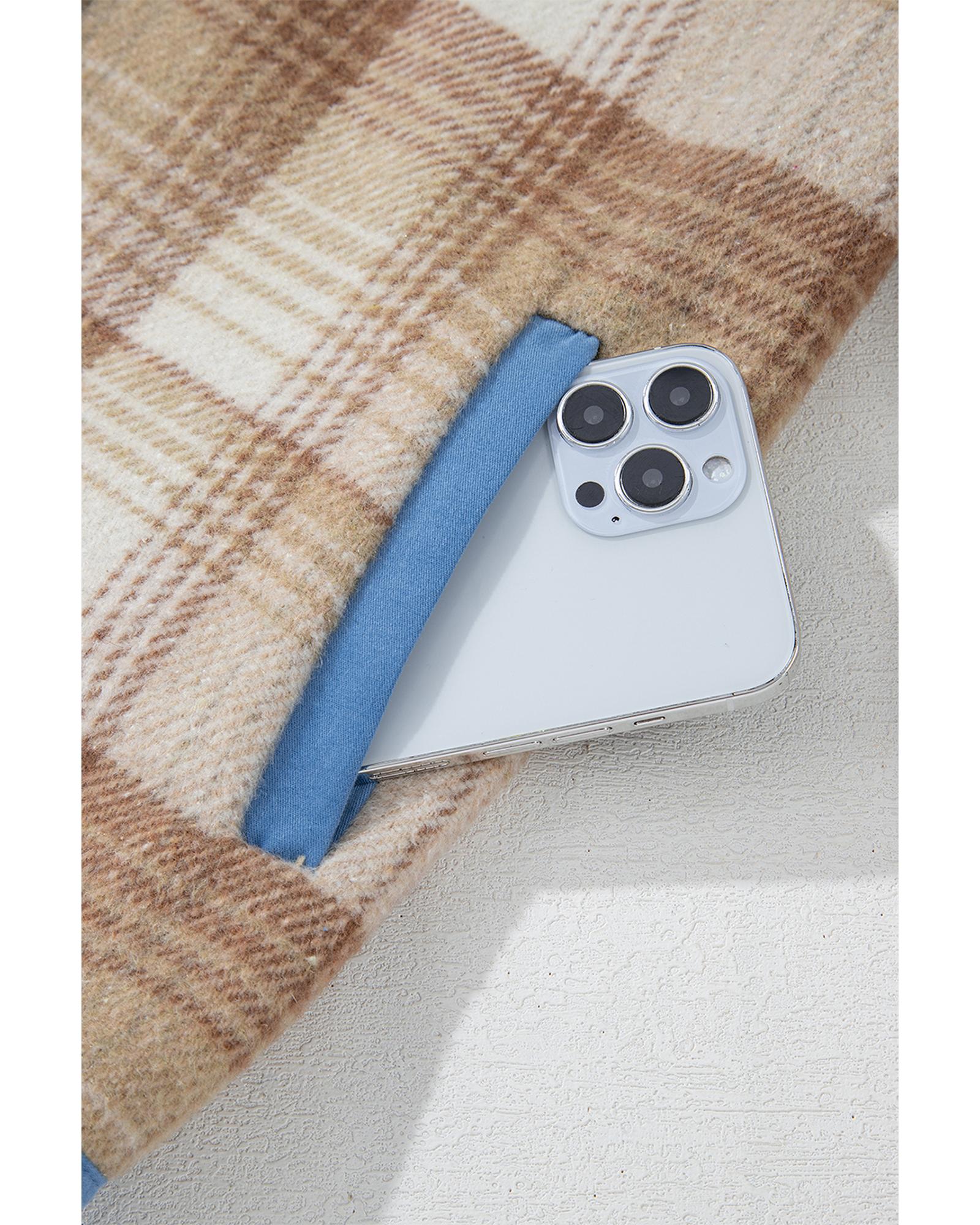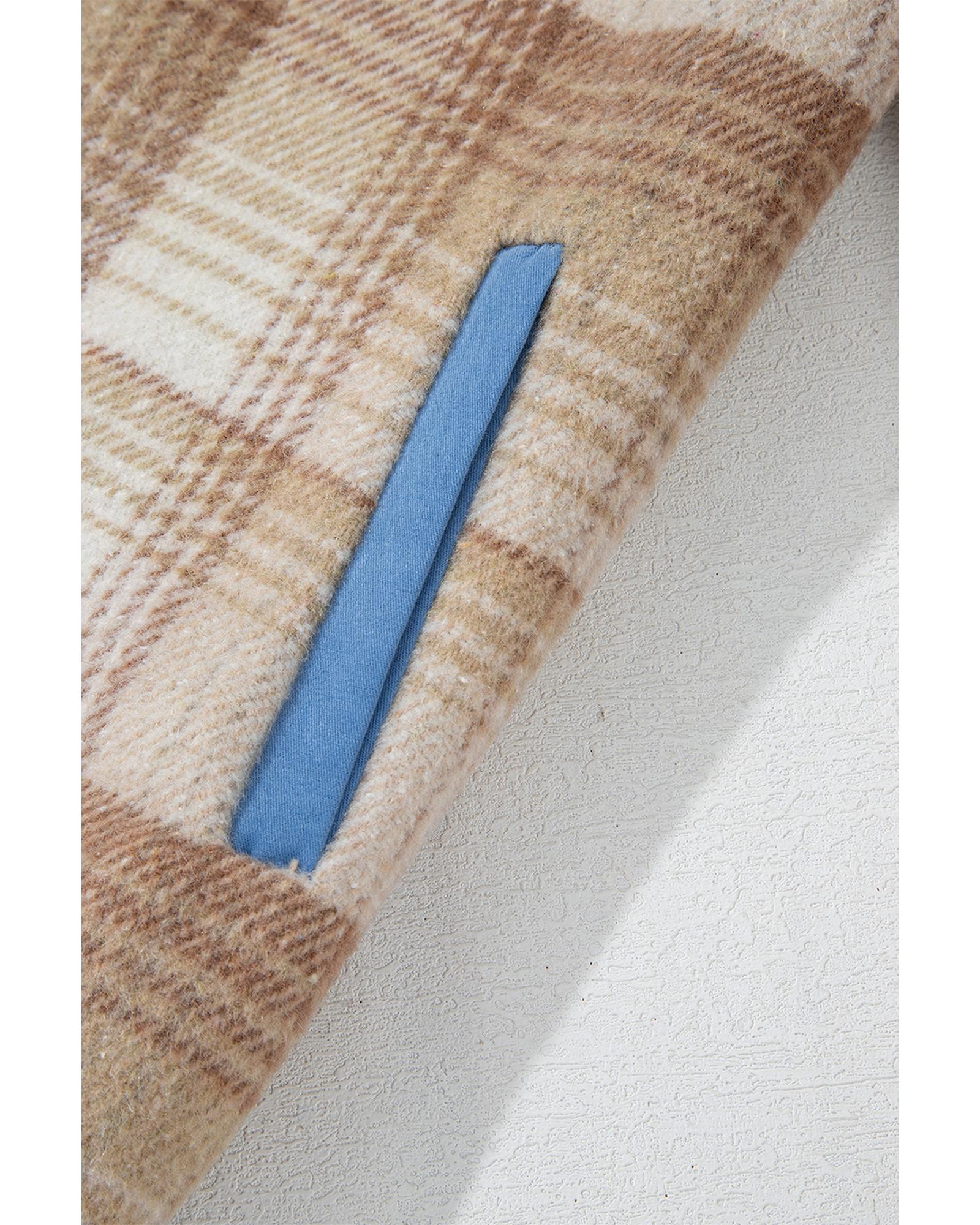 Light French Beige Plaid Patchwork Flap Detail Button Up Shacket - S
