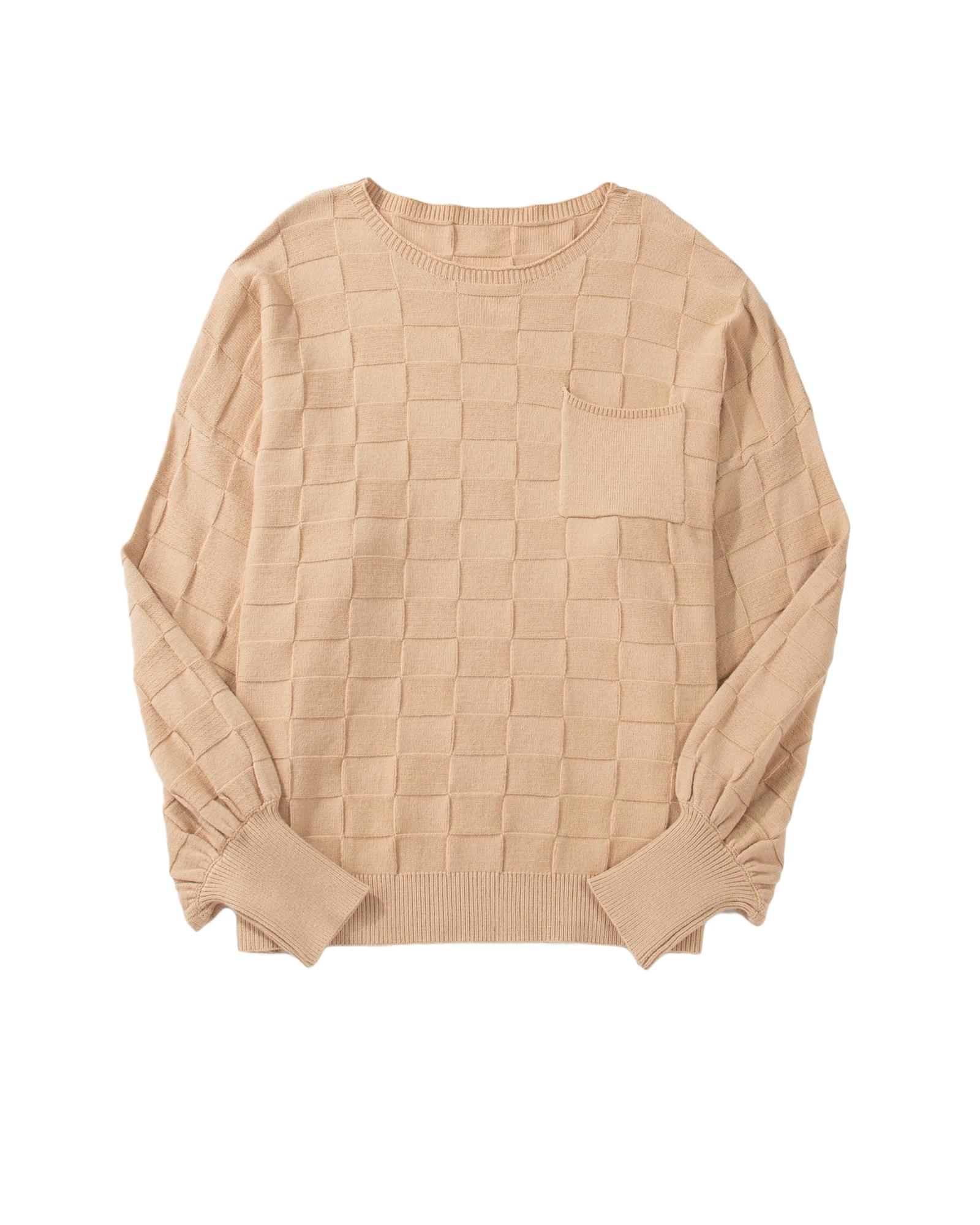 - Simple yet elegant Light French Beige Solid Checkered Textured Knit sweater