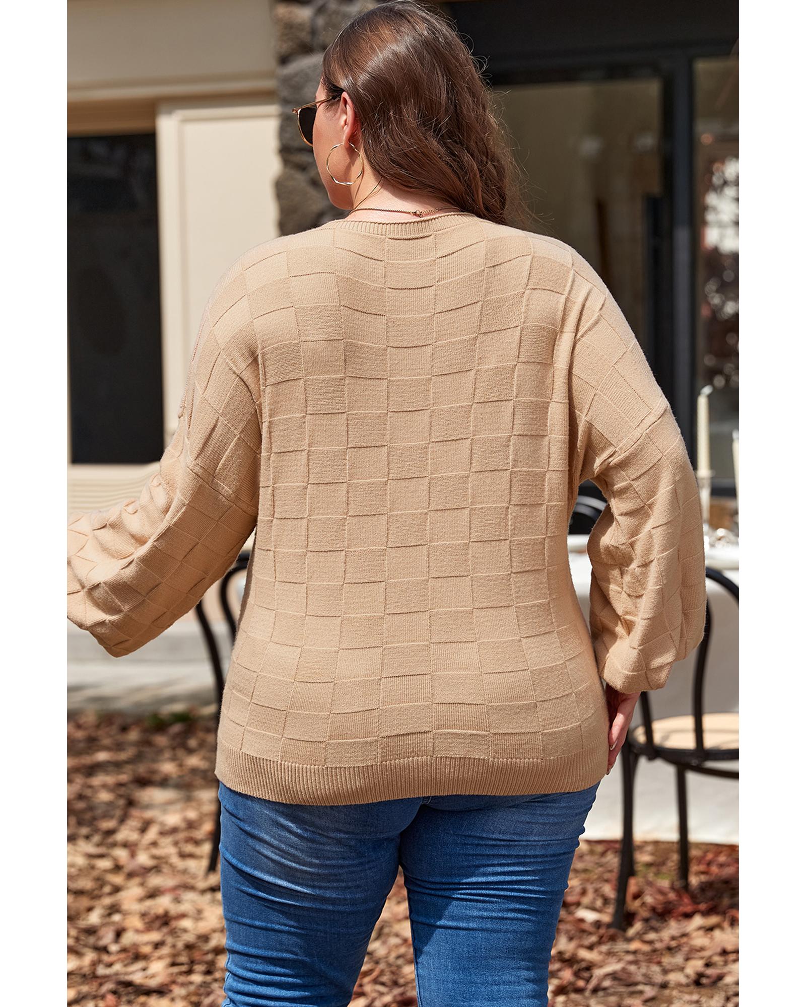 Light French Beige Solid Checkered Textured Knit Plus Size Sweater – 3X