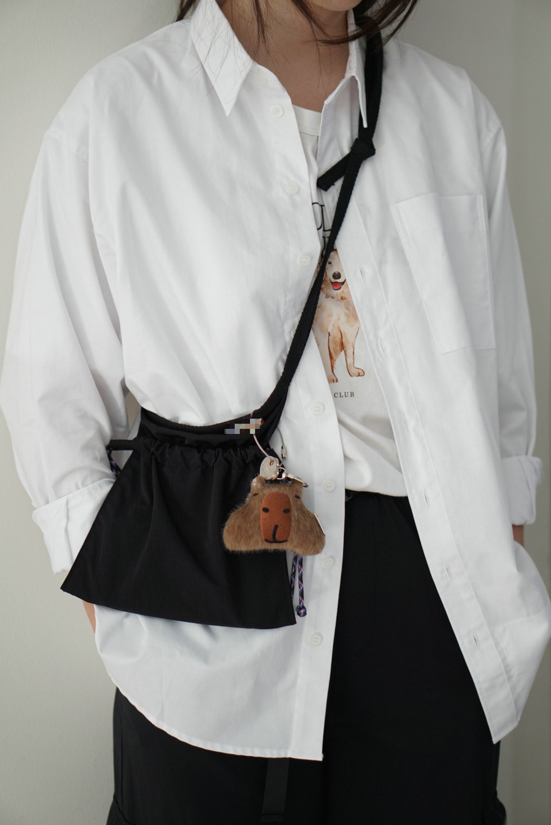 Travel light and keep your essentials secure with this adorable and simple drawstring crossbody bag. Perfectly sized for your phone, keys, cards, and other small necessities, it offers convenience and a minimalist aesthetic for effortless everyday use.