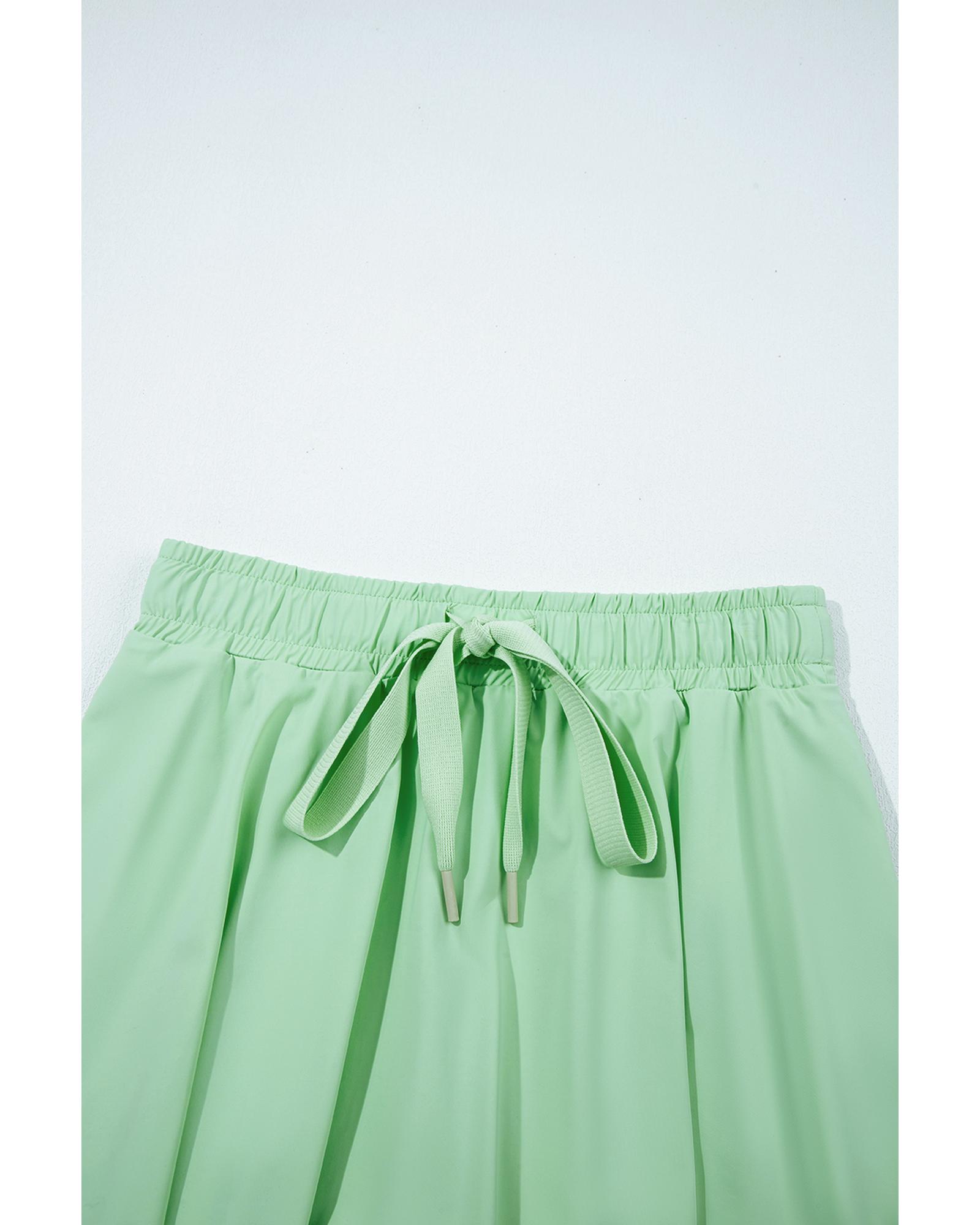 Light Green Drawstring High Waist Lined Tennis Skorts – L