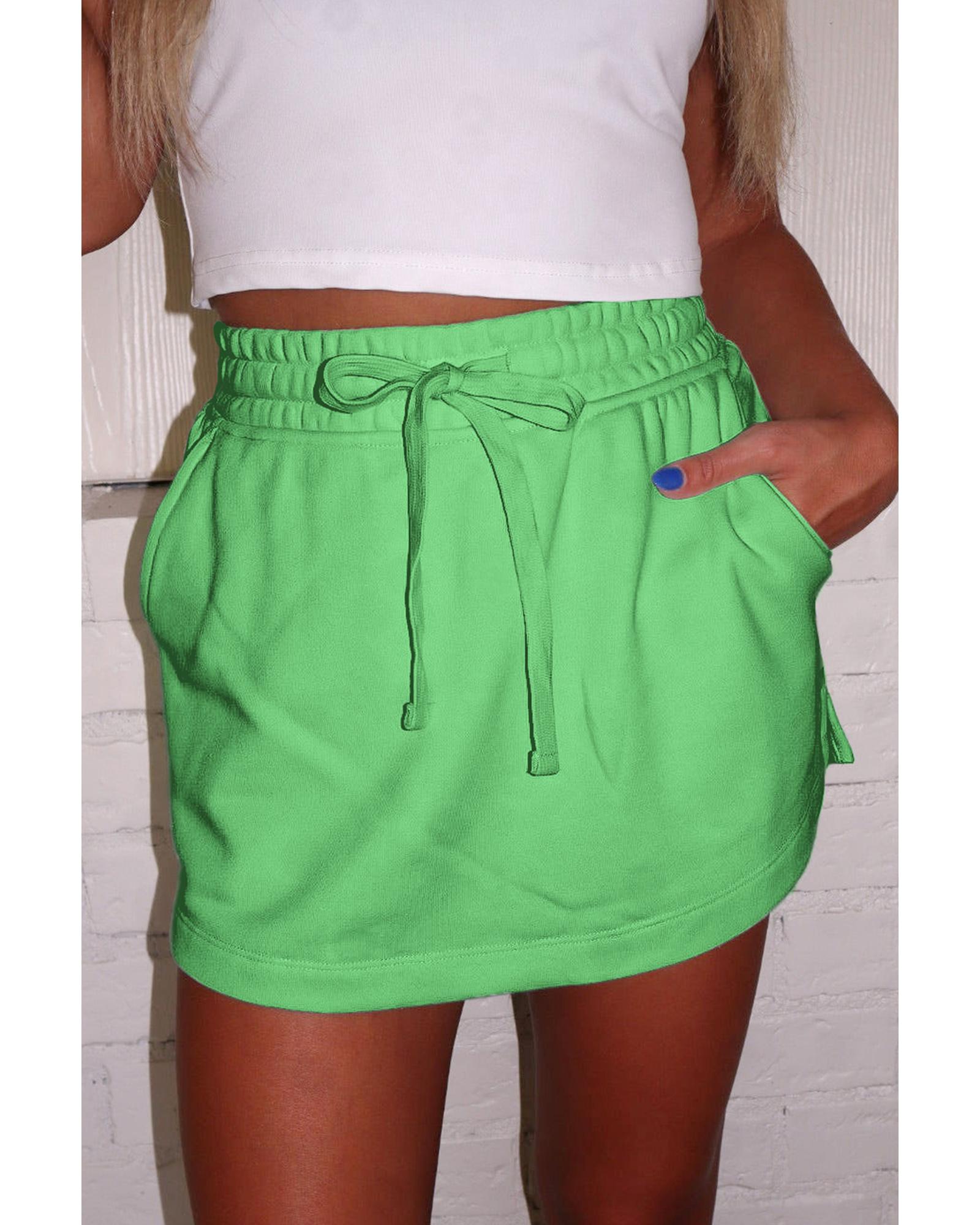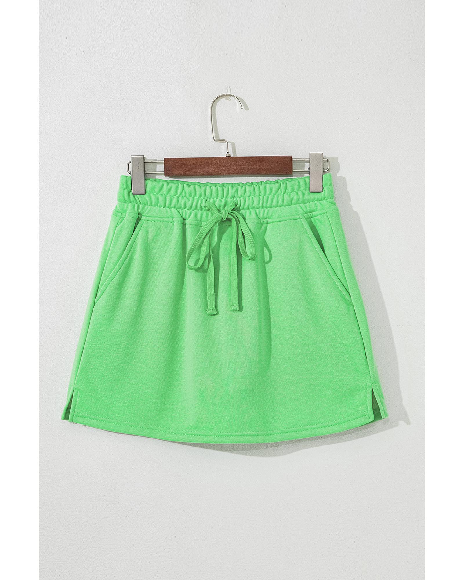 Light Green French Terry Drawstring Mini Skort with Pockets - XL