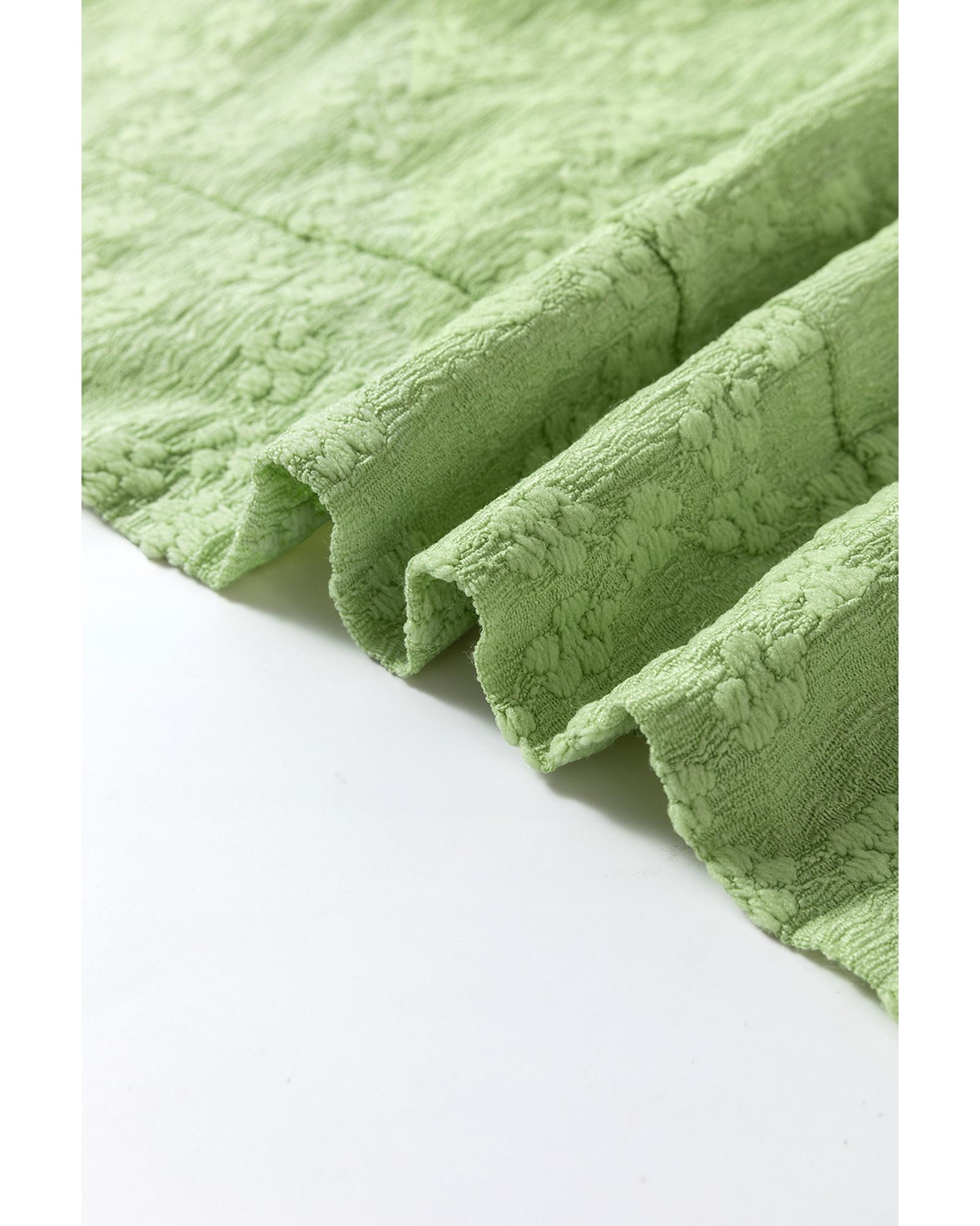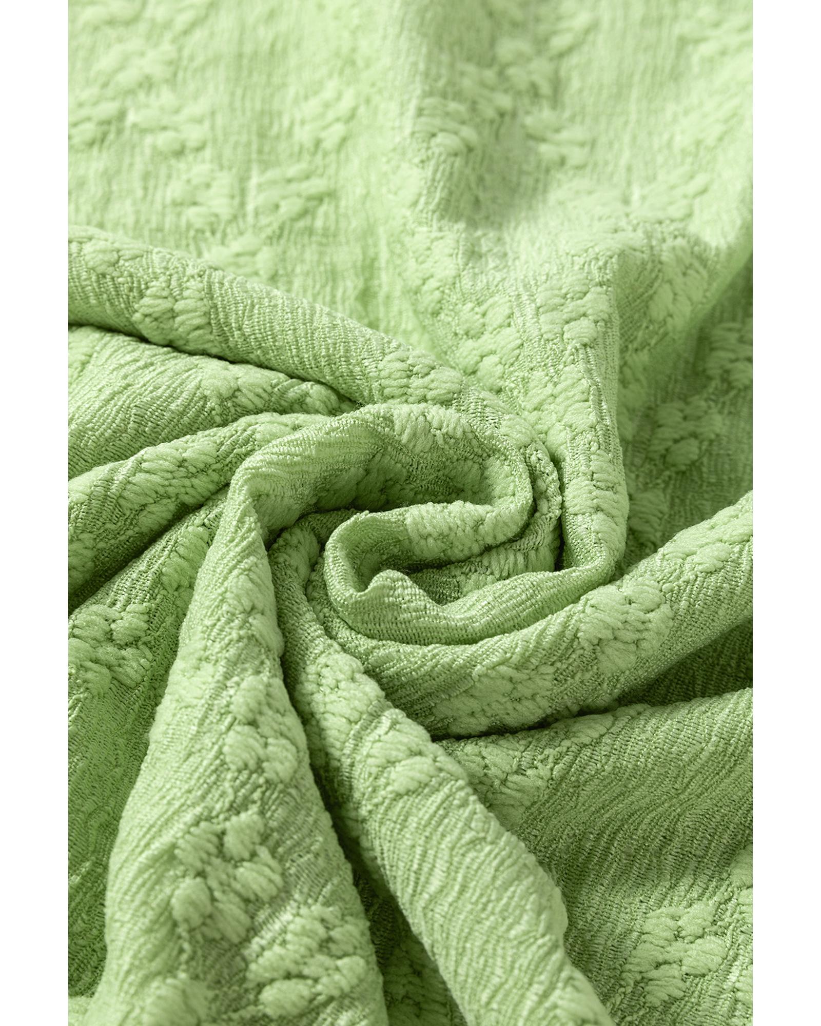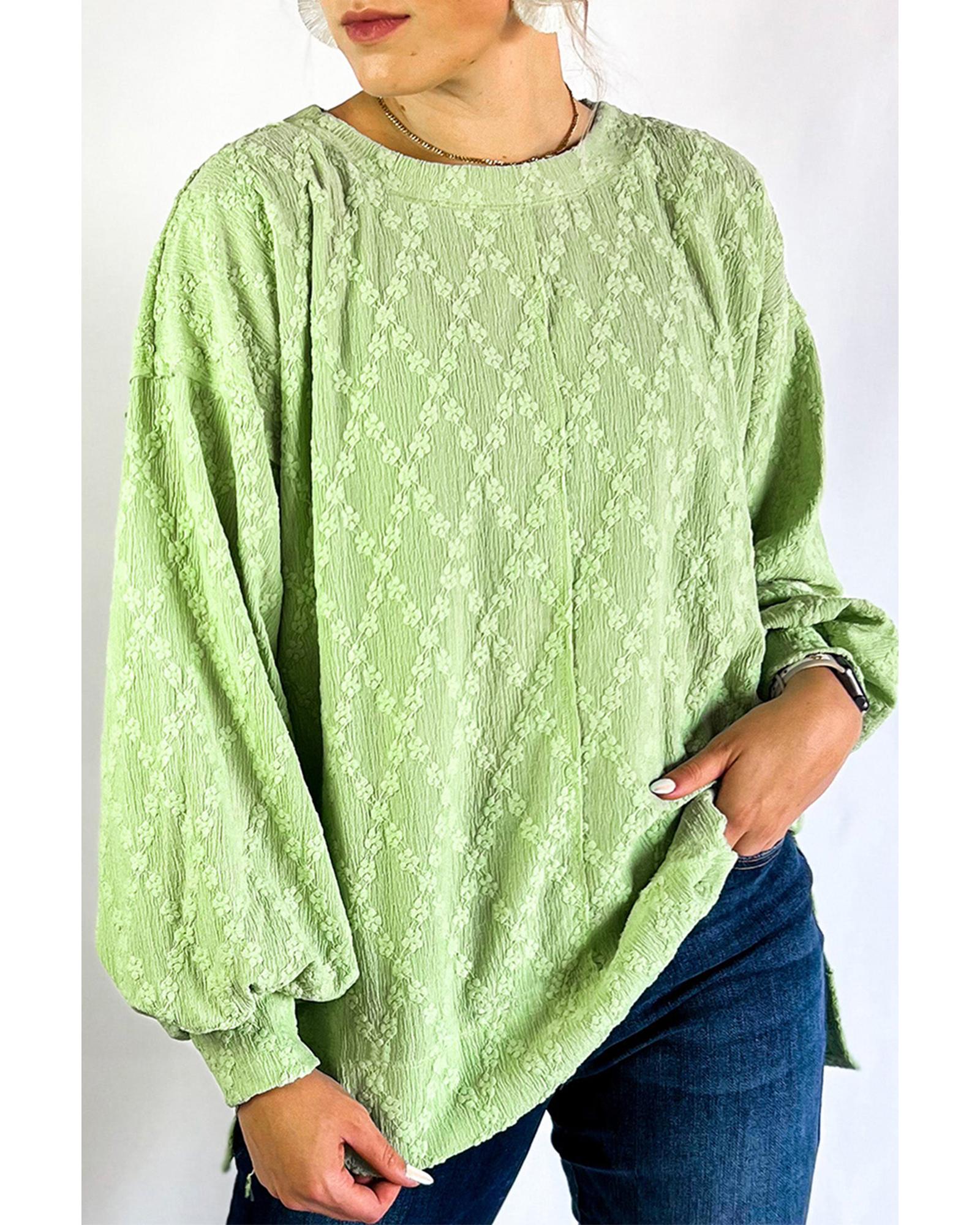 Light Green Solid Color Textured Side Split Crew Neck Blouse – S
