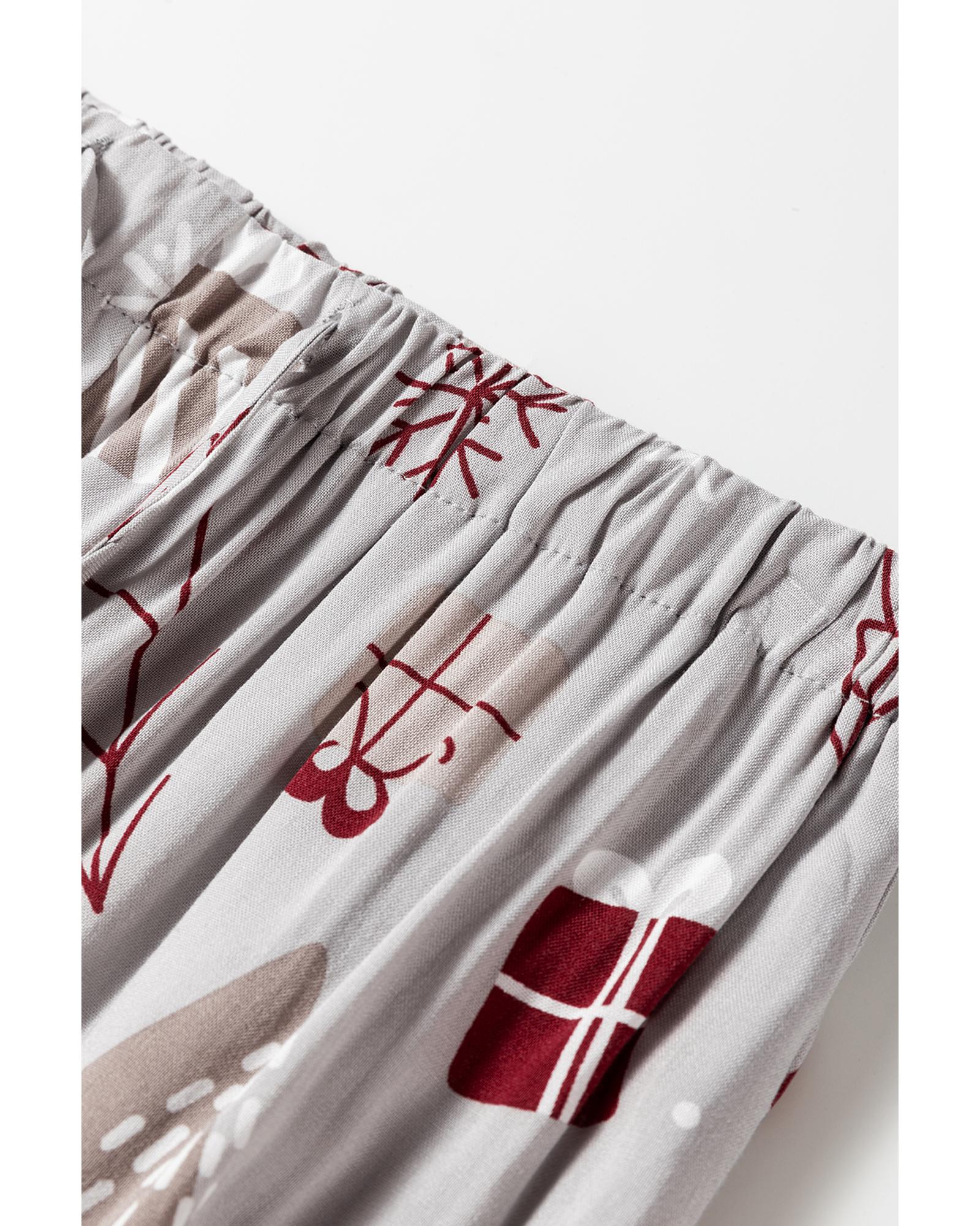 - Light Grey Christmas Printed Shirt and Pants Pajama Set
