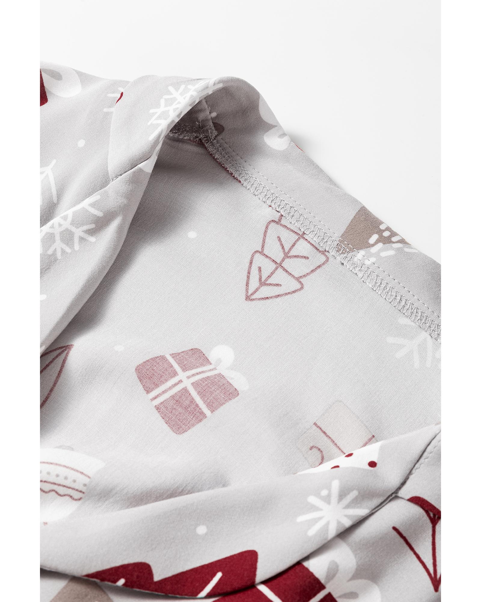 Light Grey Christmas Printed Shirt and Pants Pajama Set – S