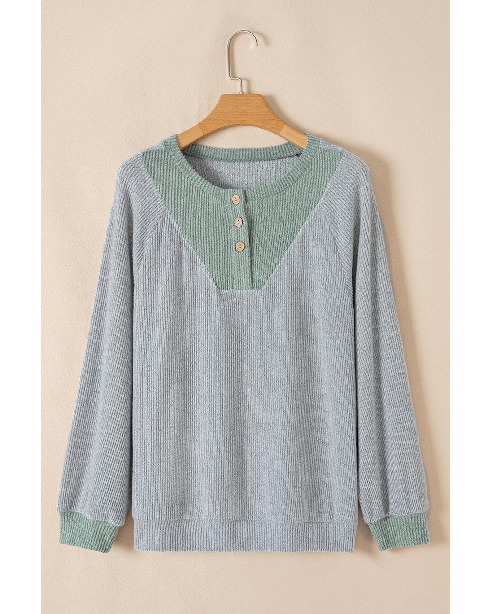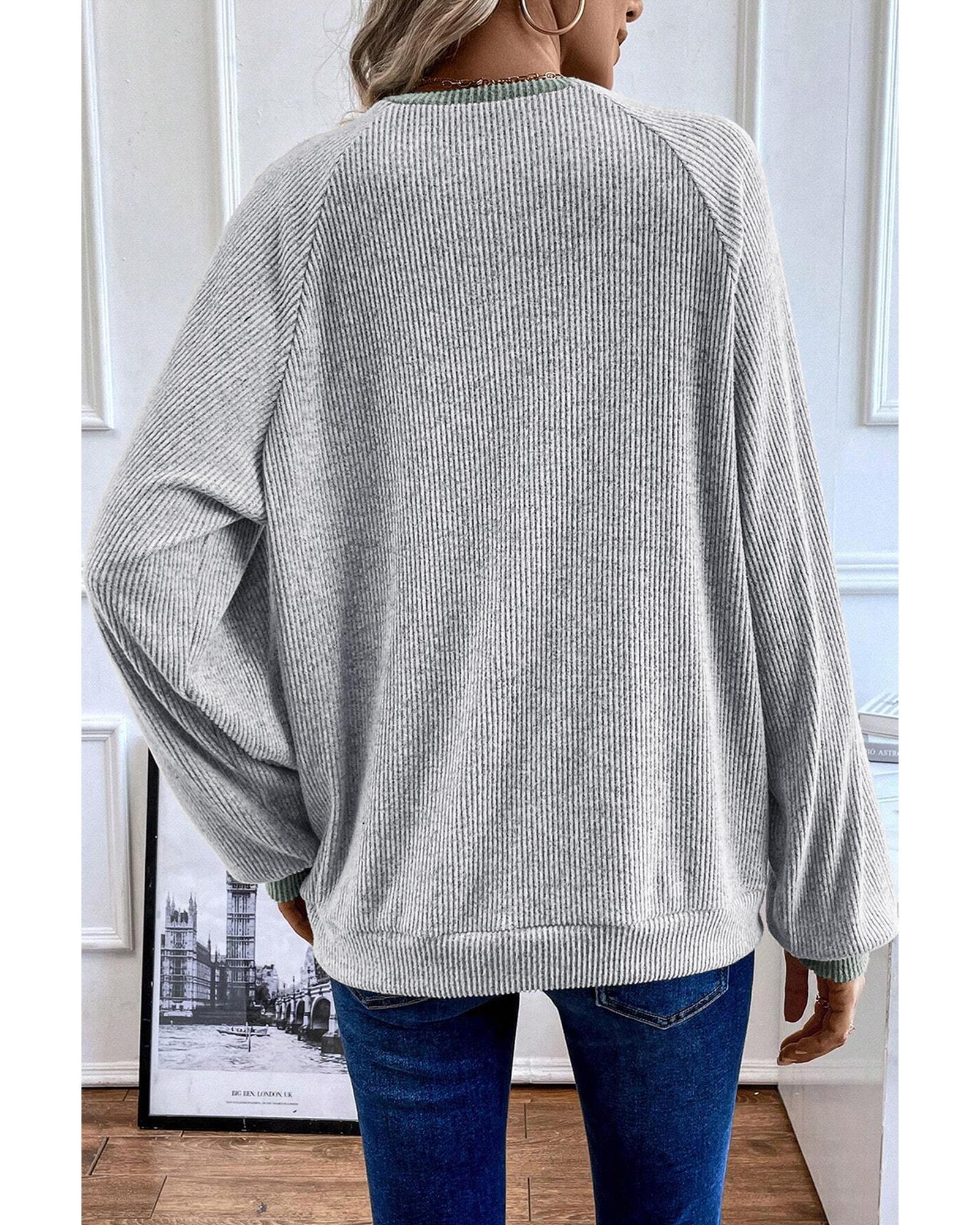 Light Grey Color Contrast Ribbed Loose Fit Long Sleeve Top – S