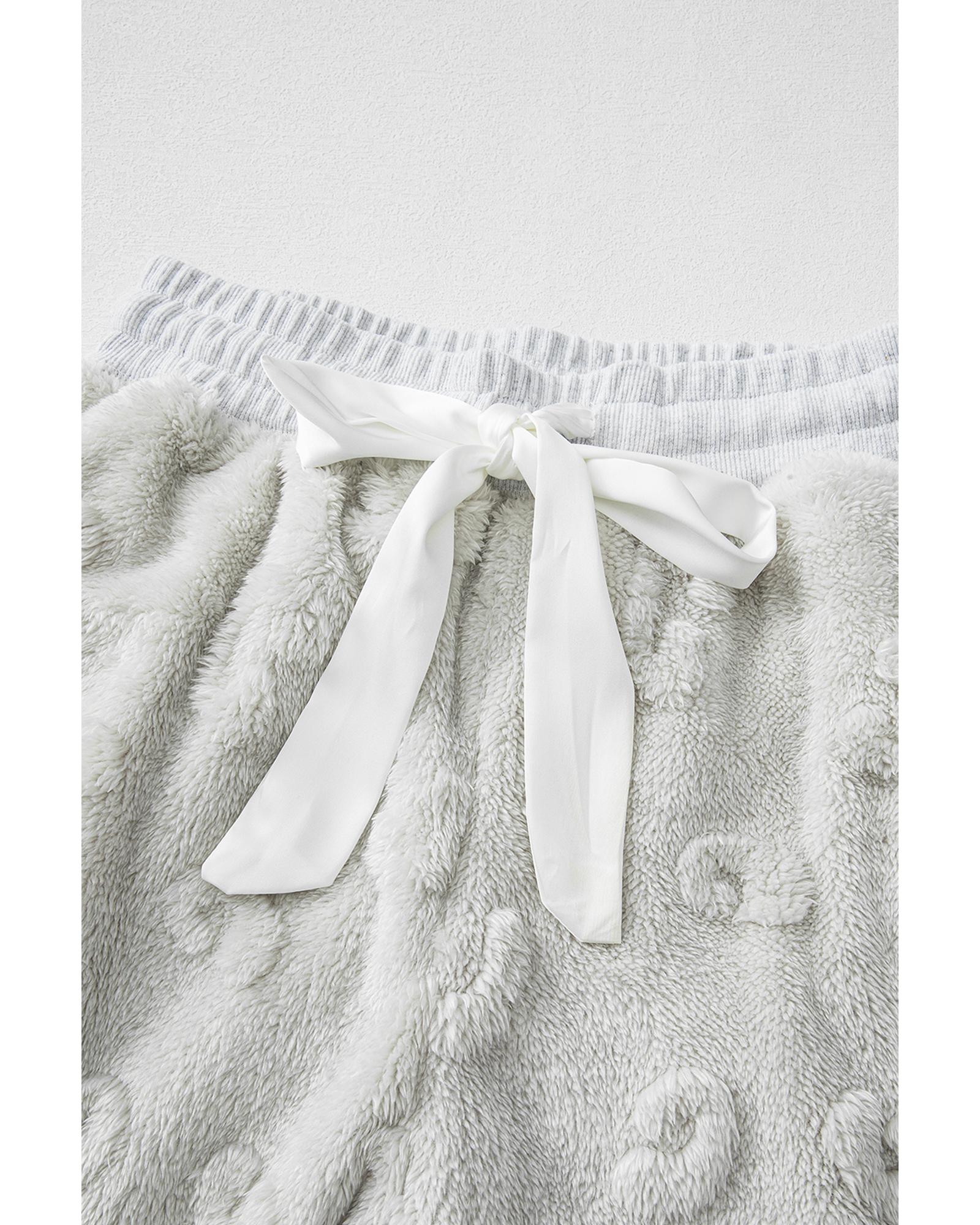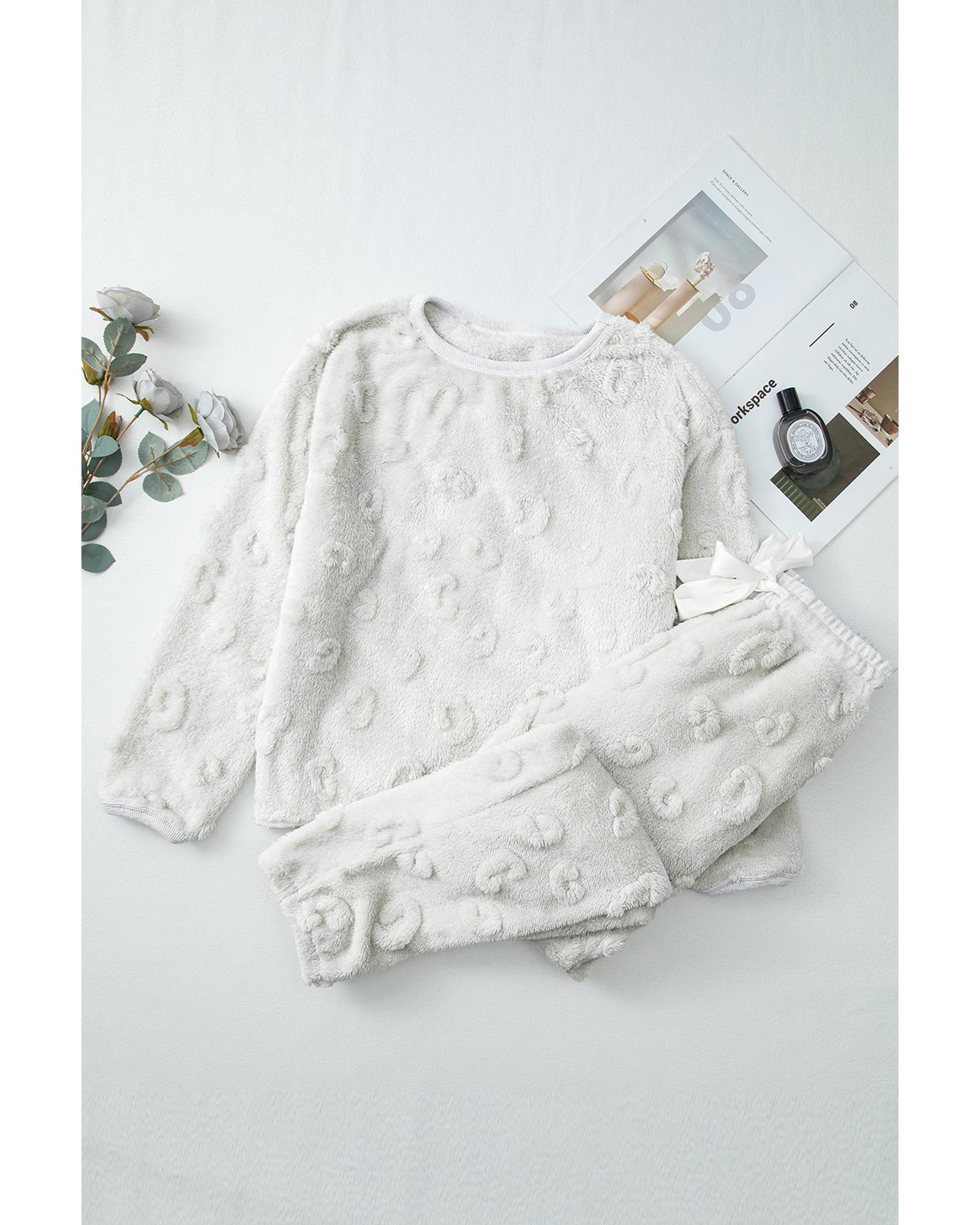 Light Grey Leopard Textured Loose Fit Fleece Lounge Set – L