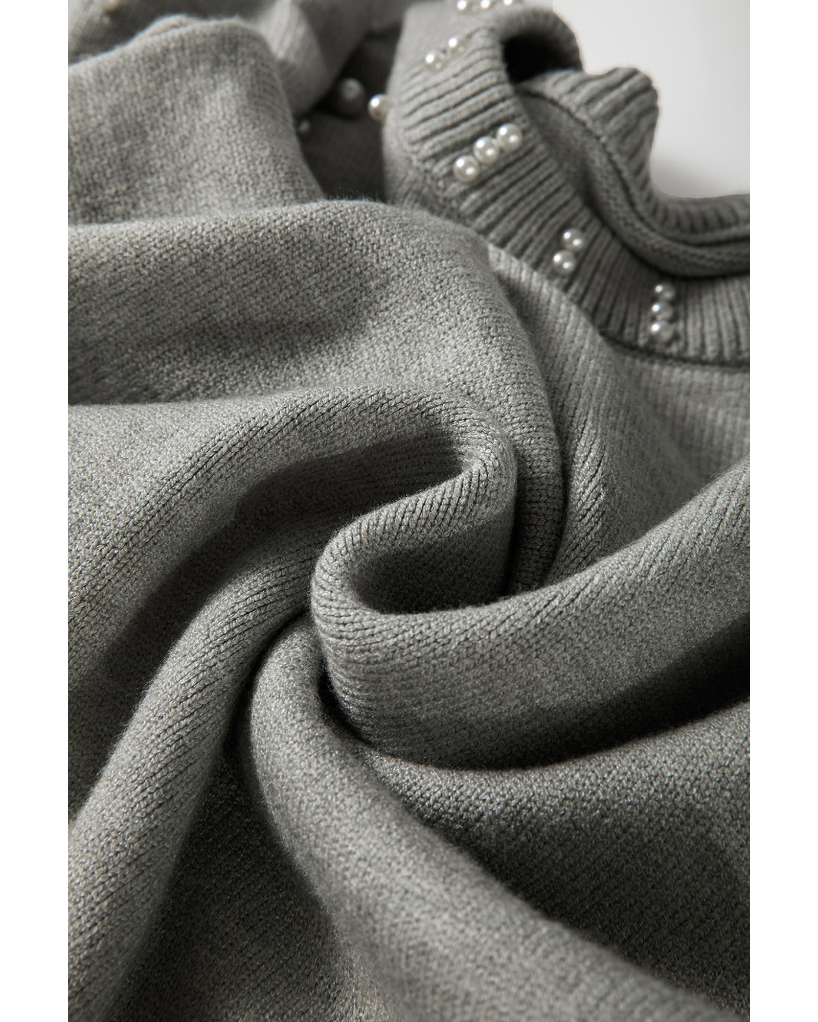 - Light grey sweater with pearled details