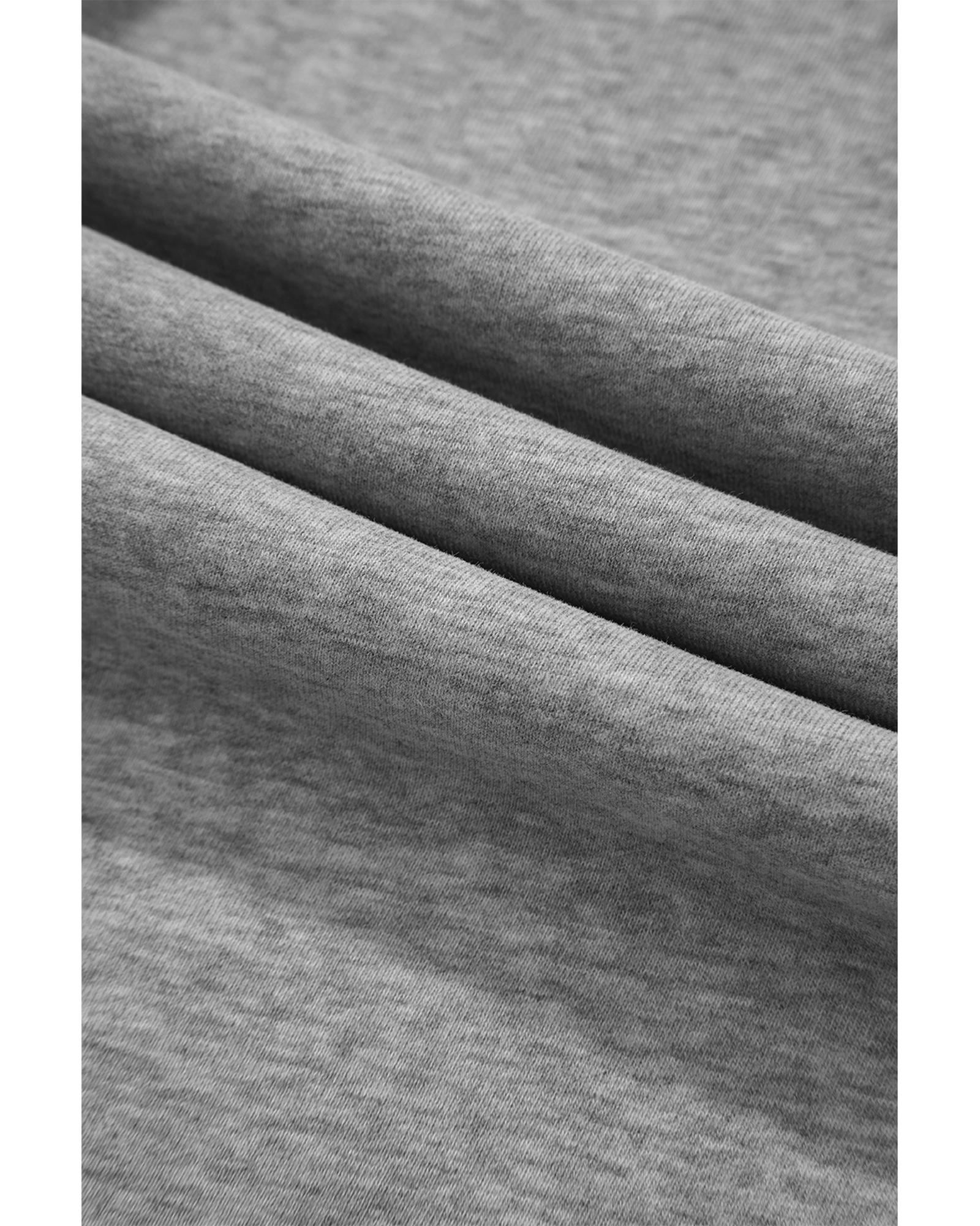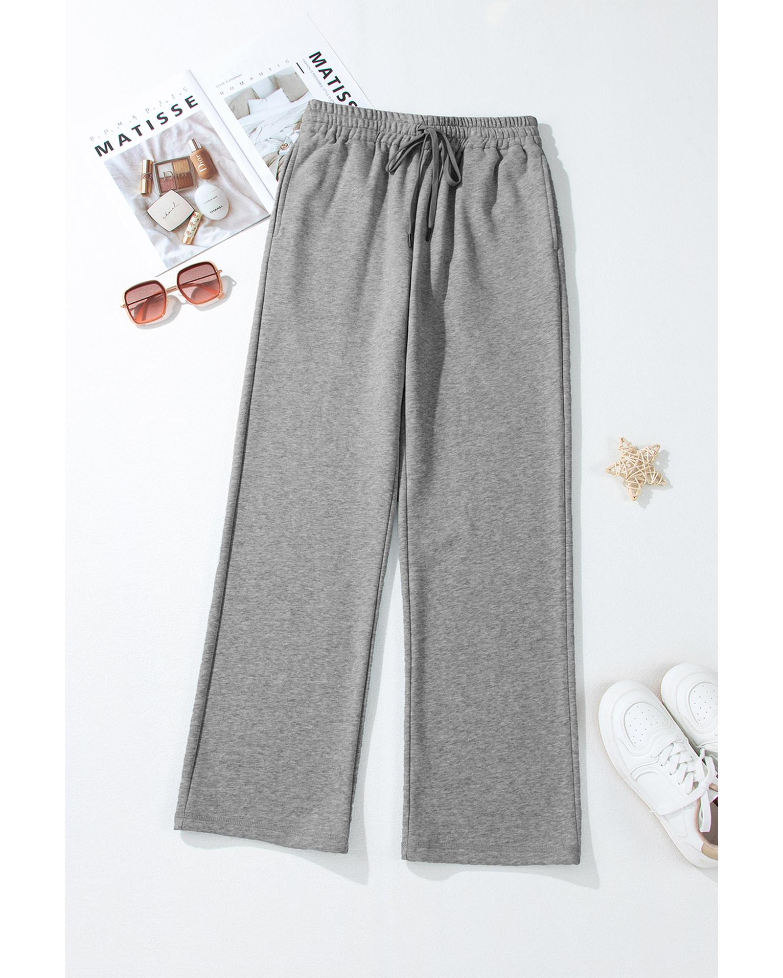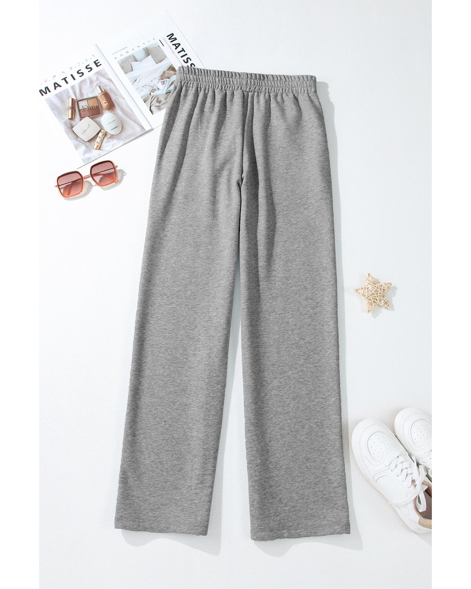 Light Grey Solid Color Fleece Lined Drawstring Waist Casual Pants – L
