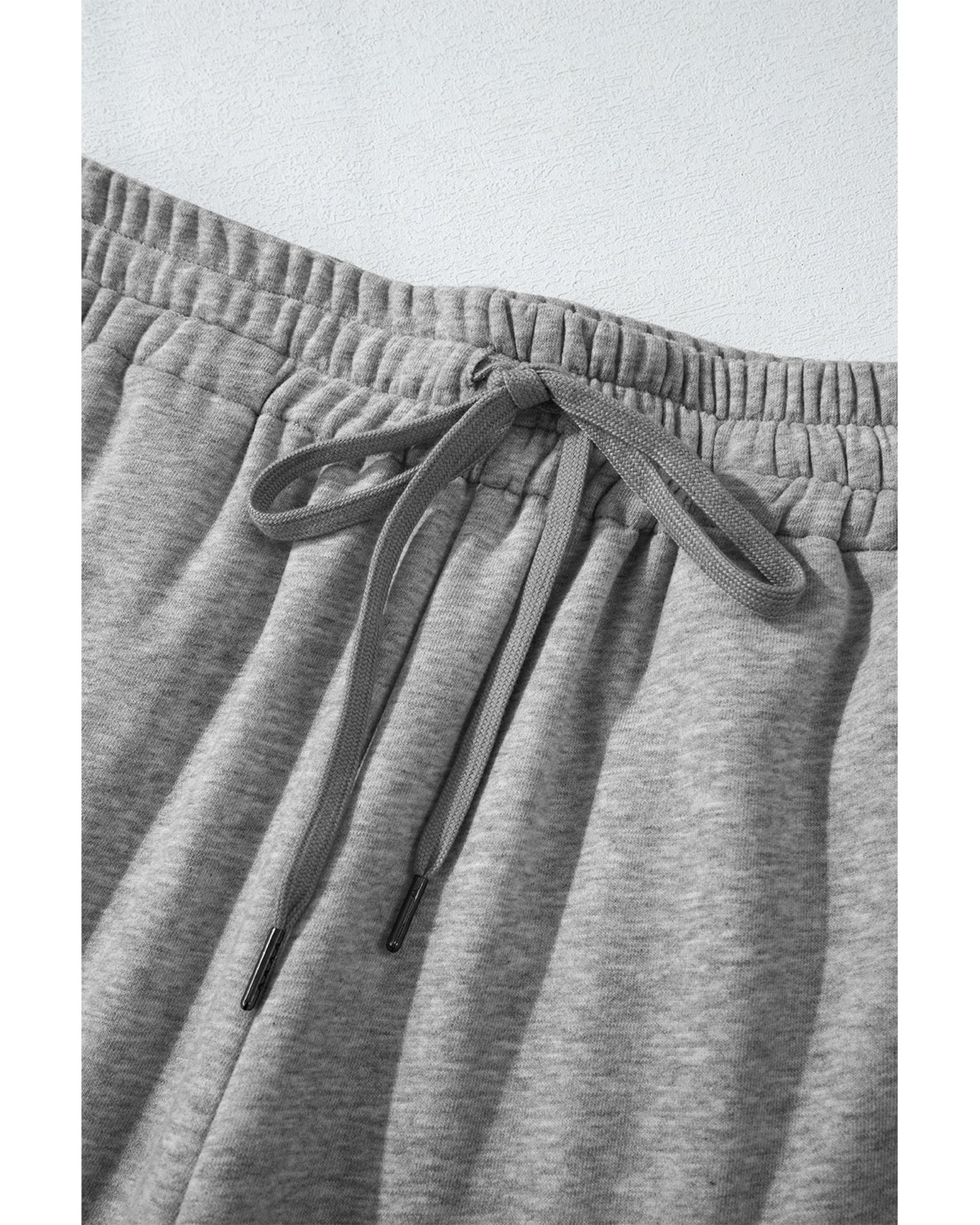 Light Grey Solid Color Fleece Lined Drawstring Waist Casual Pants – S