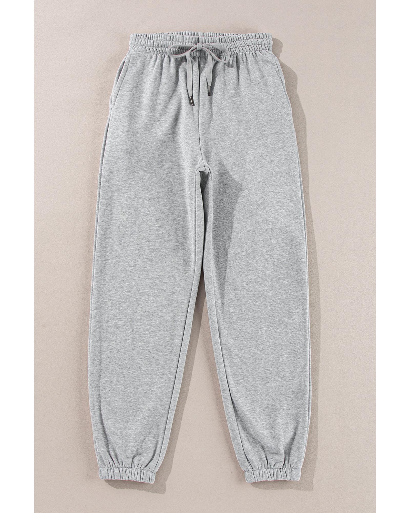 Light Grey Solid Color Fleece Lined Drawstring Waist Joggers – L