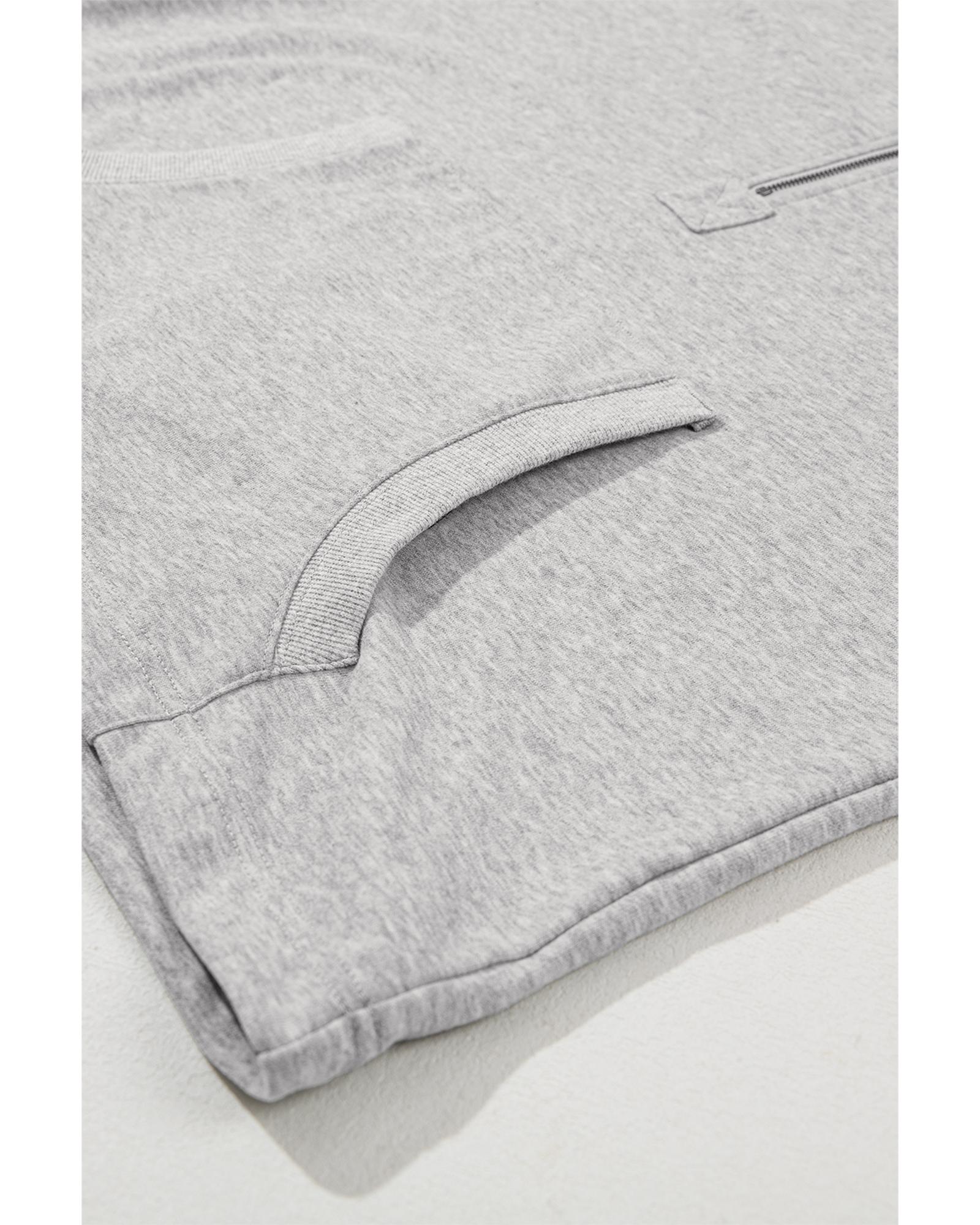 Light Grey Solid Kangaroo Pocket Half Zipper Oversized Hoodie – M