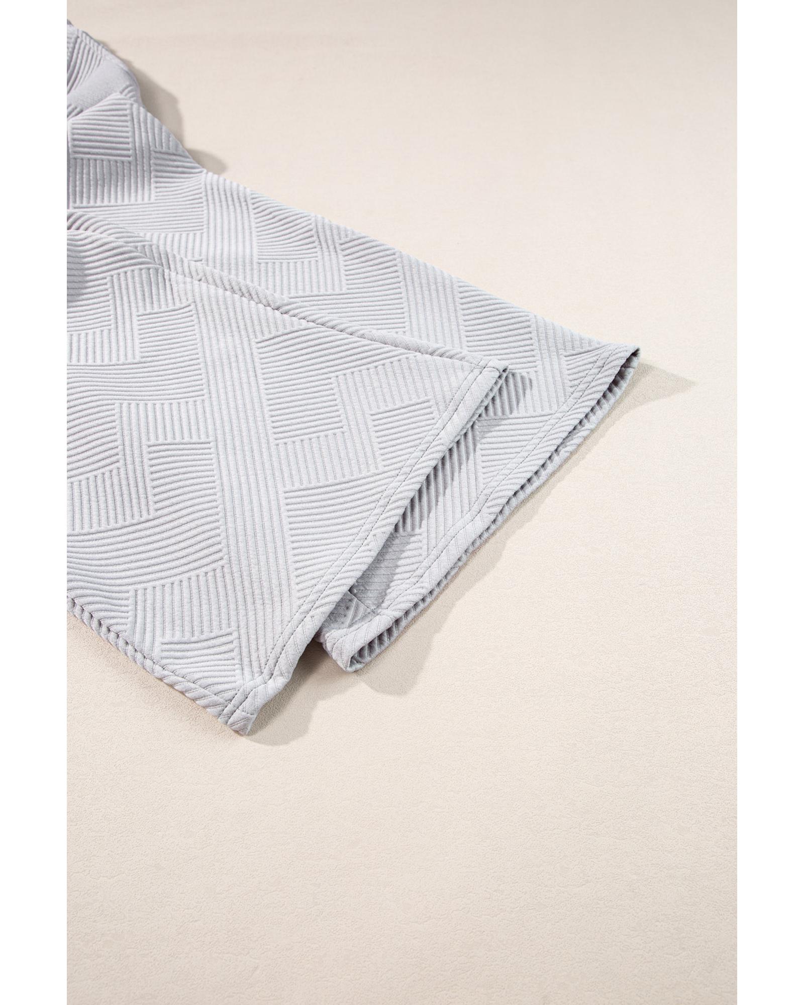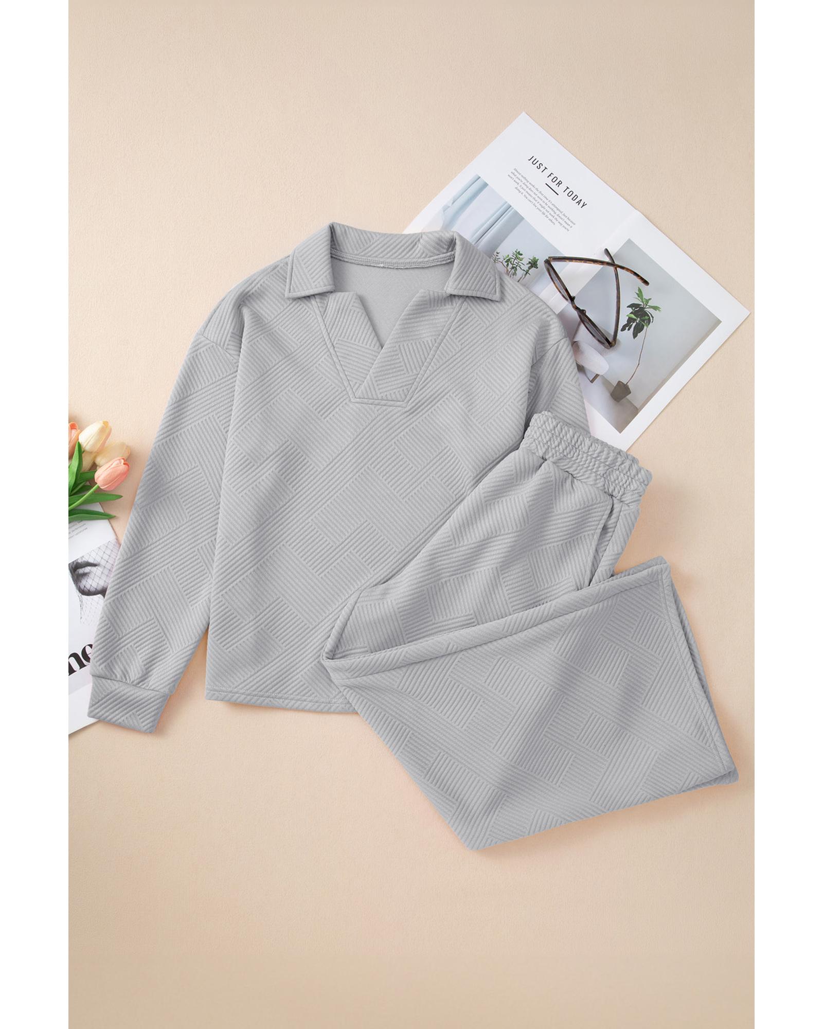 - Light Grey Solid Textured Collared V Neck Top and Wide Leg Pants Set
