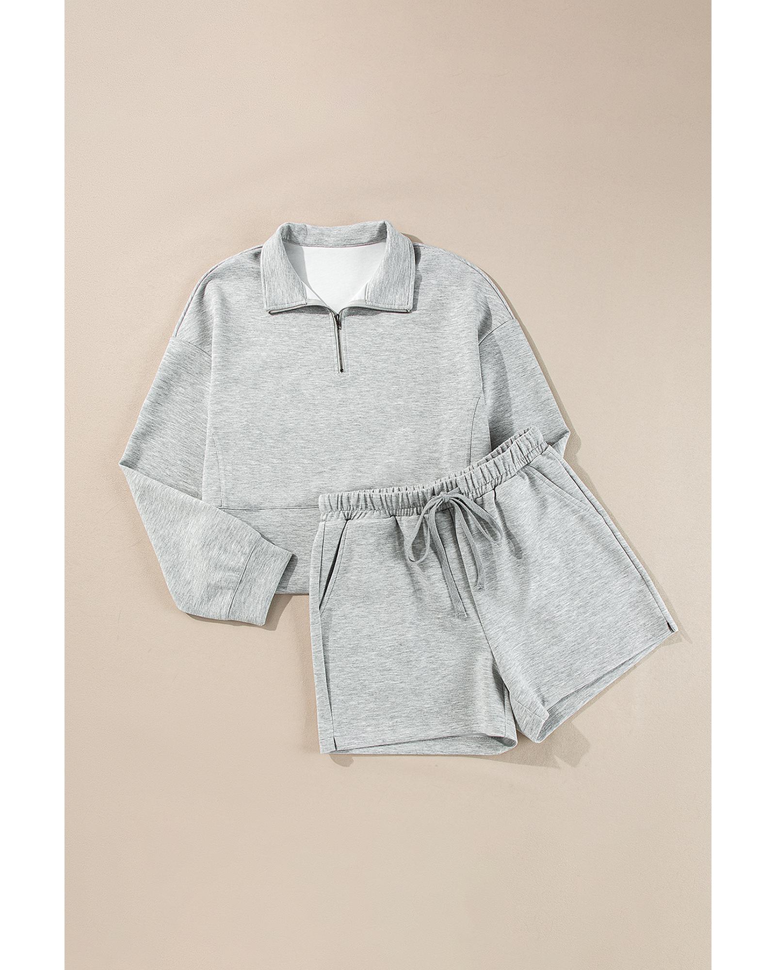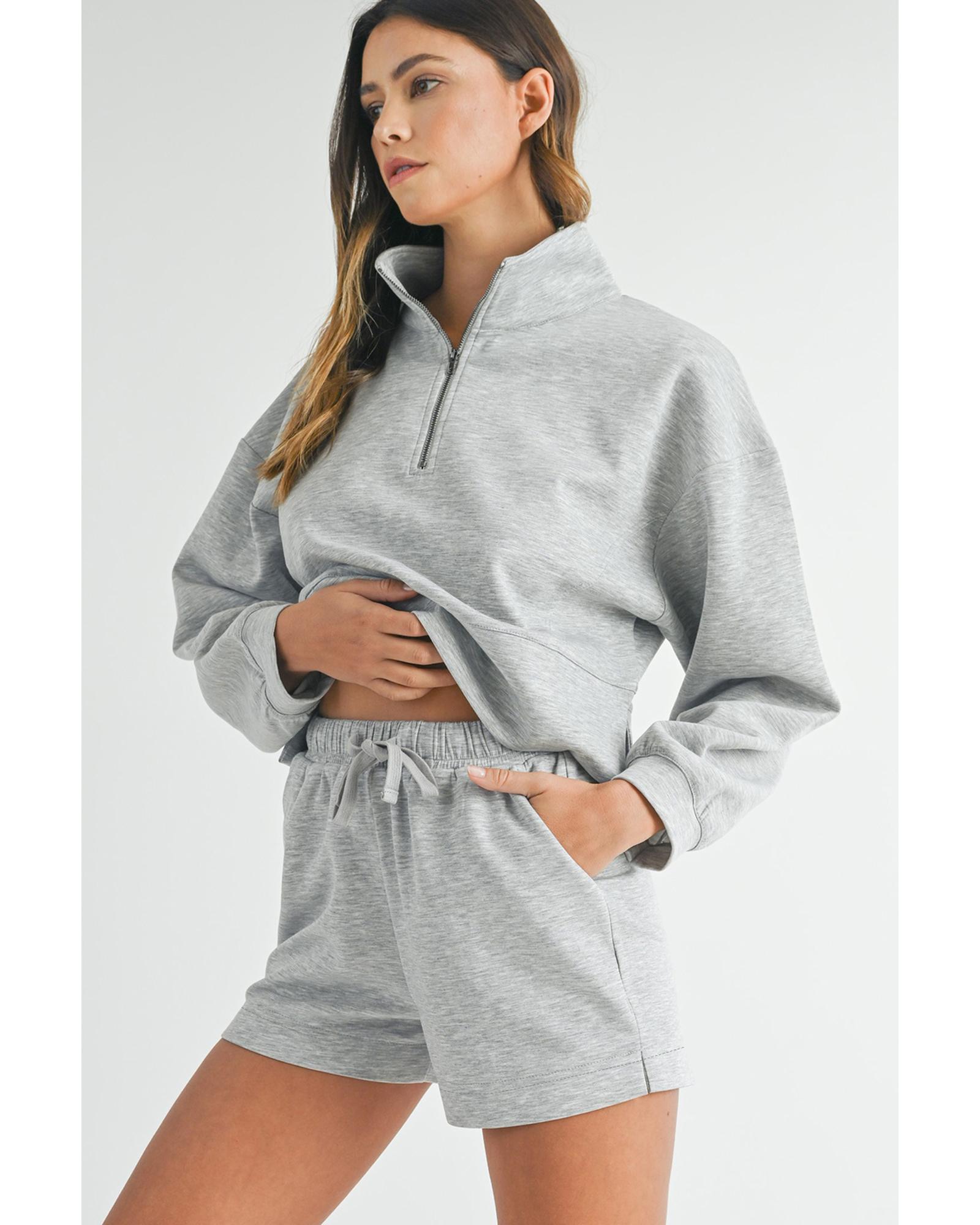 Light Grey Stand Neck Zipped Sweatshirt and Shorts Set – M