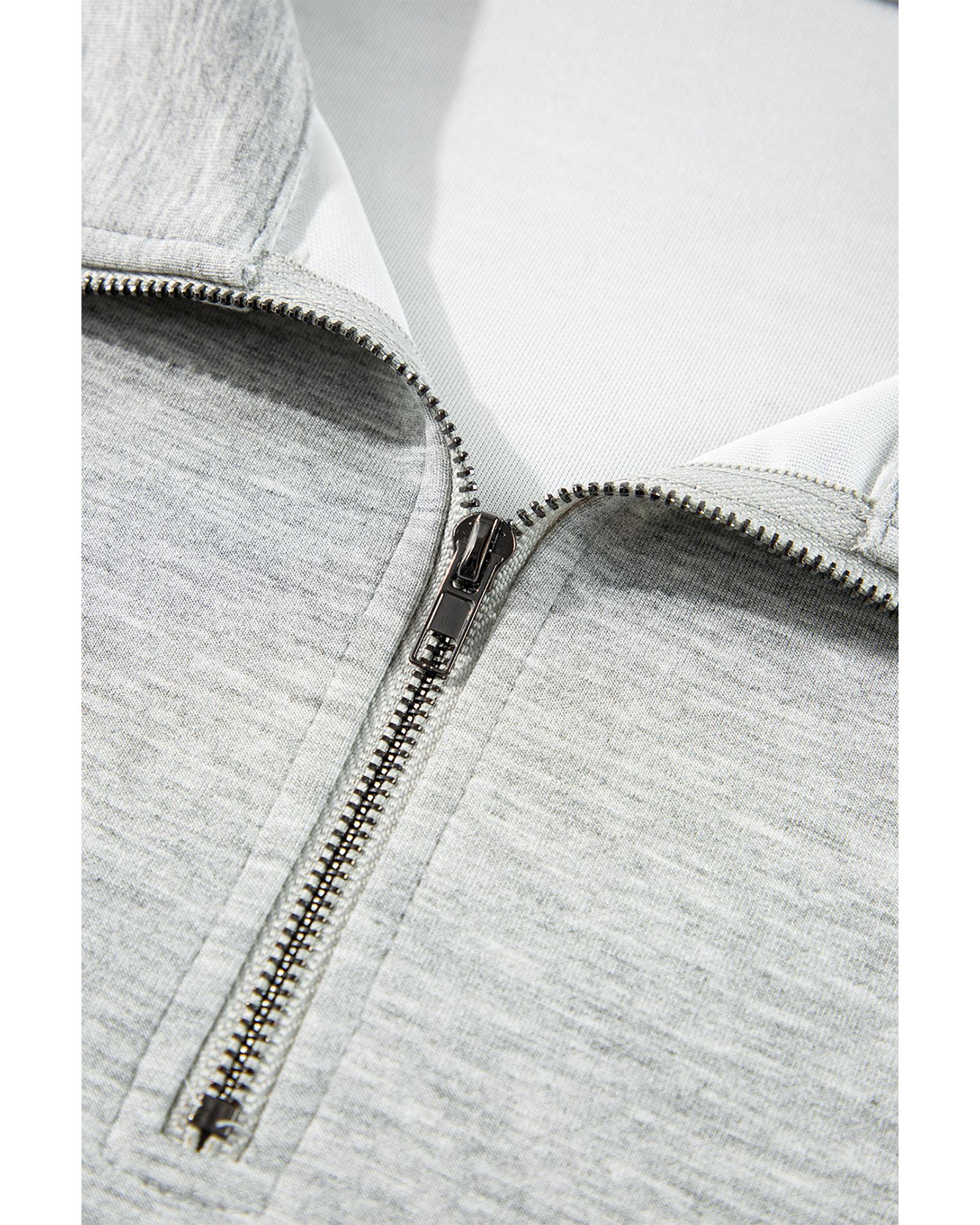 Light Grey Stand Neck Zipped Sweatshirt and Shorts Set - L