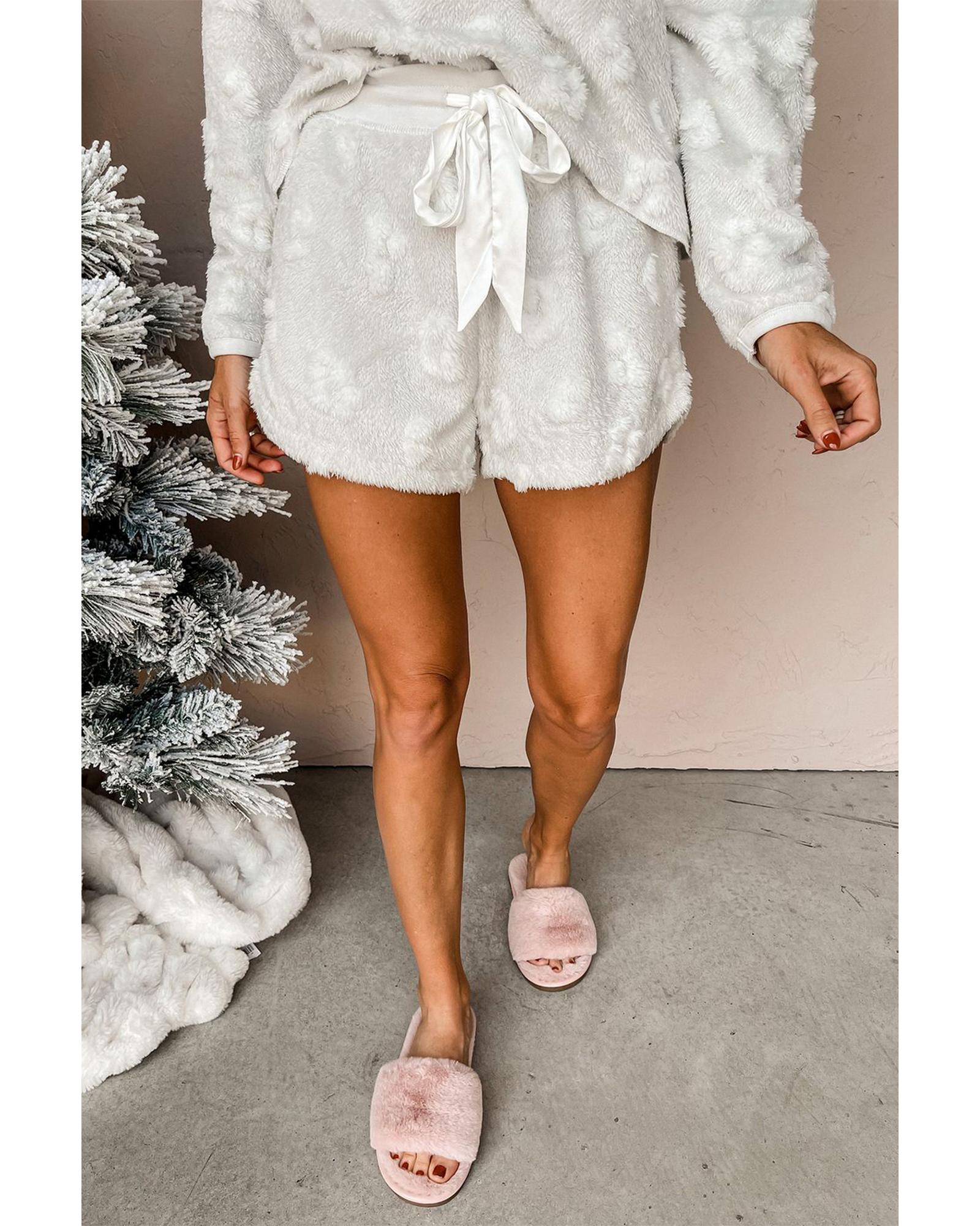 - Light Grey Textured Leopard Fleece Loose Two Piece Lounge Set