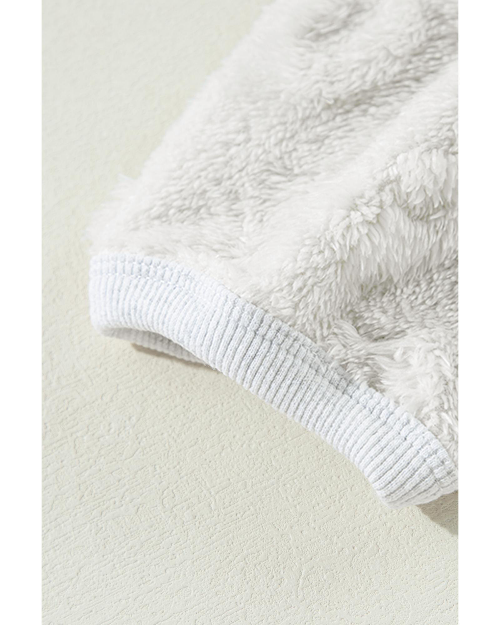 - Light Grey Textured Leopard Fleece Loose Two Piece Lounge Set