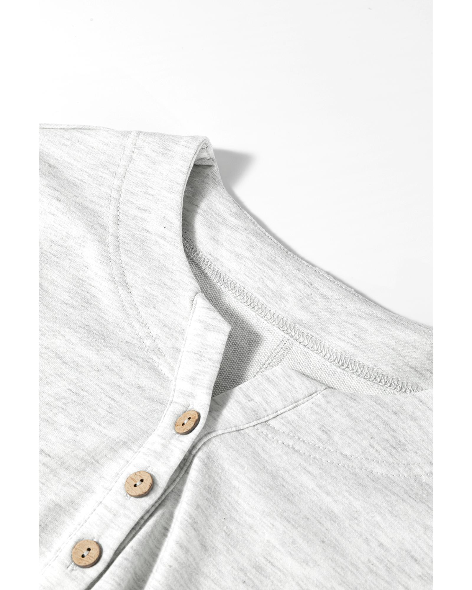 Light Grey Two Tone Contrast Waffle Knit Patched Buttoned V Neck Top – L