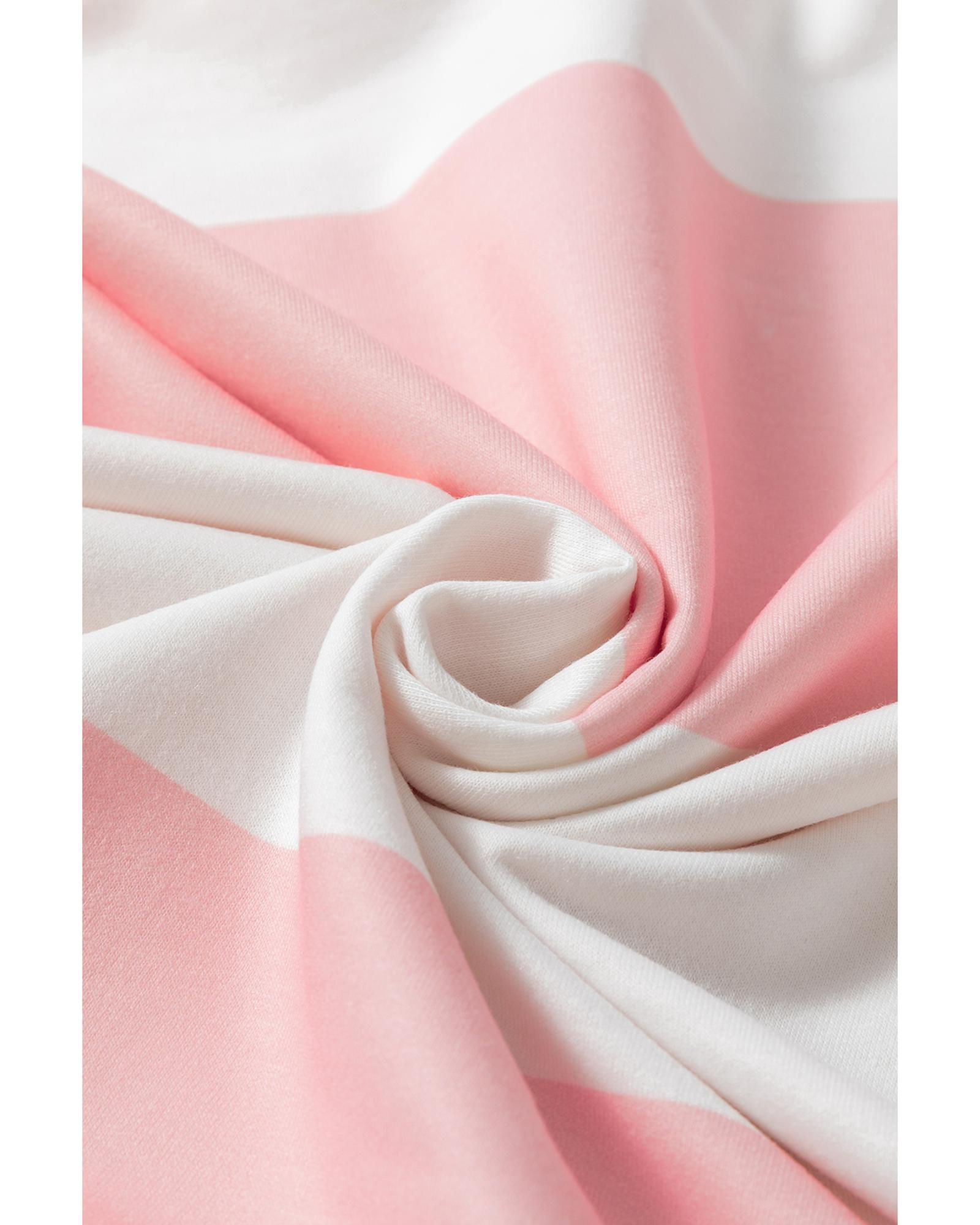 - Light Pink Colorblock Striped Drop Shoulder Long Sleeve Top