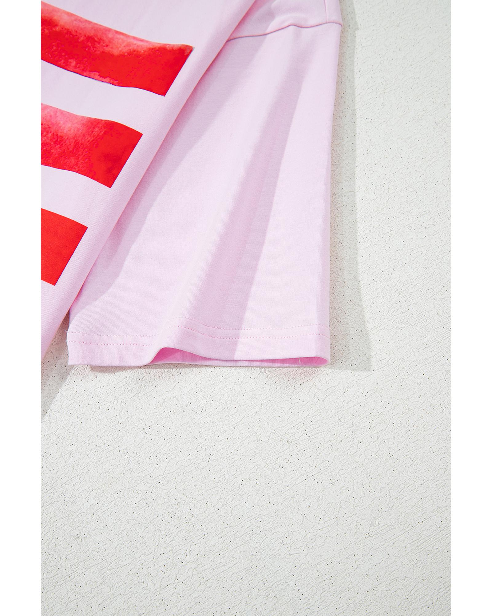 Light Pink Flag Bow Graphic Crewneck Tee – S