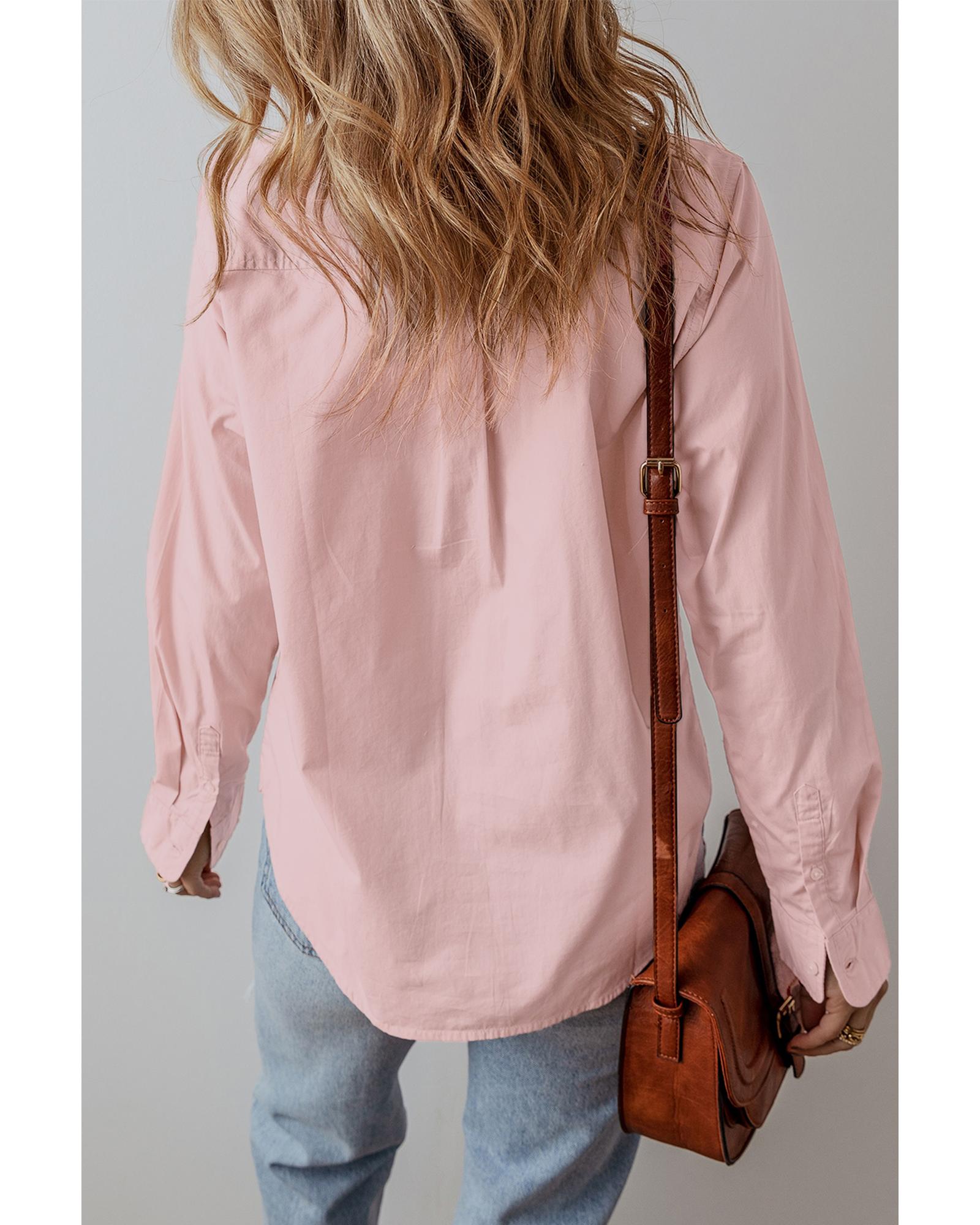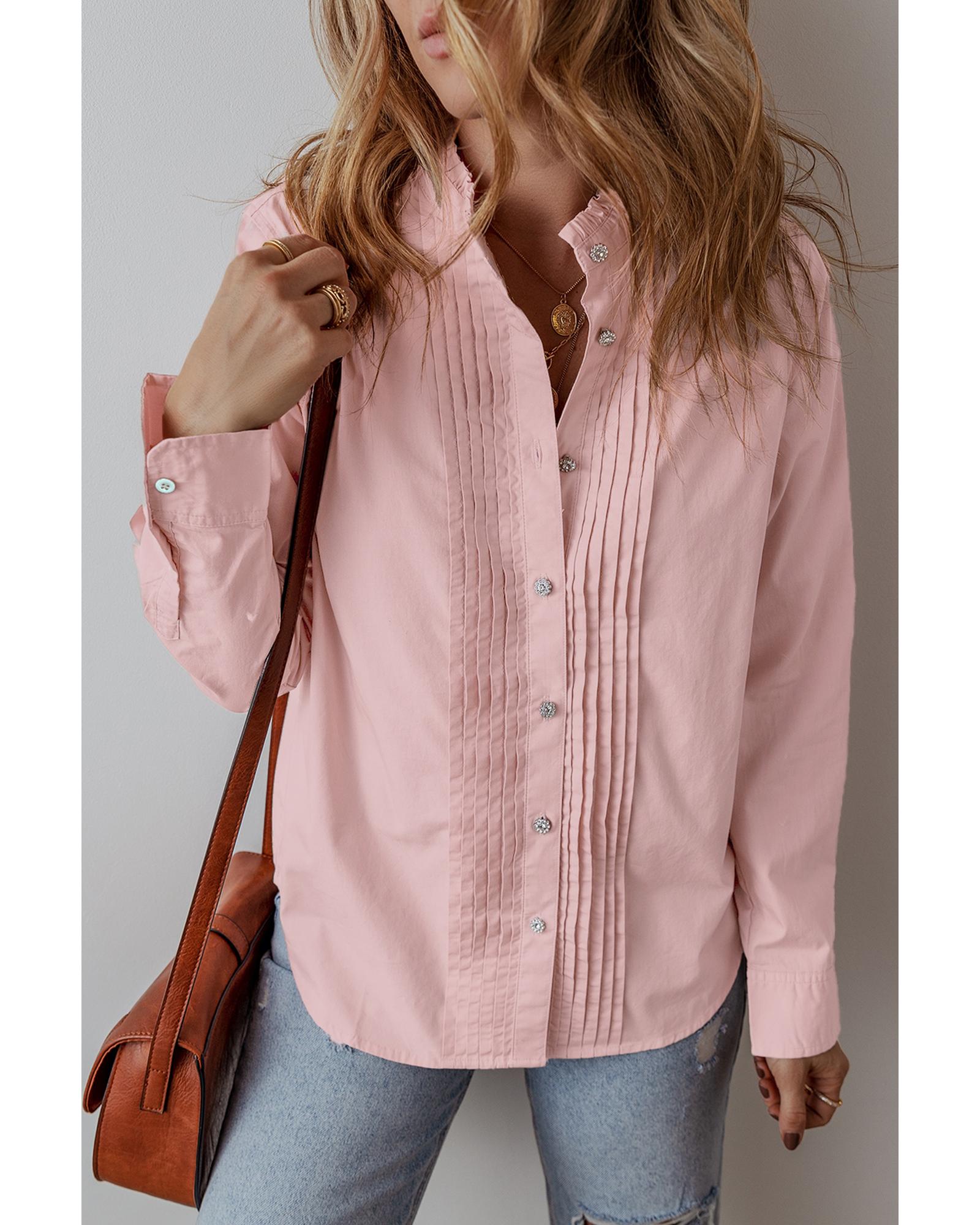 Light Pink Pleated Button-Up Loose Fit Casual Shirt – L