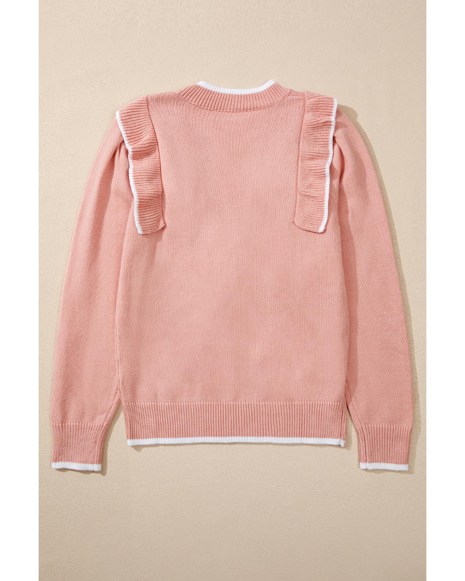 - Light pink ruffled sweater
