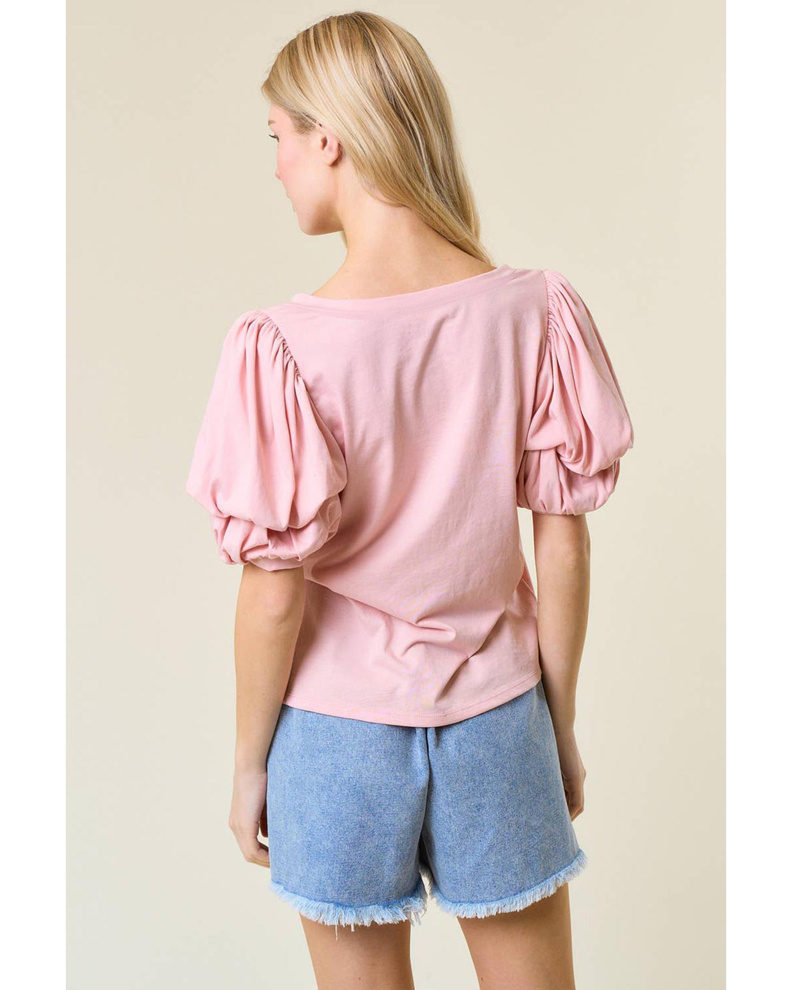 Light Pink Scoop Neck Bubble Sleeve Tee – M