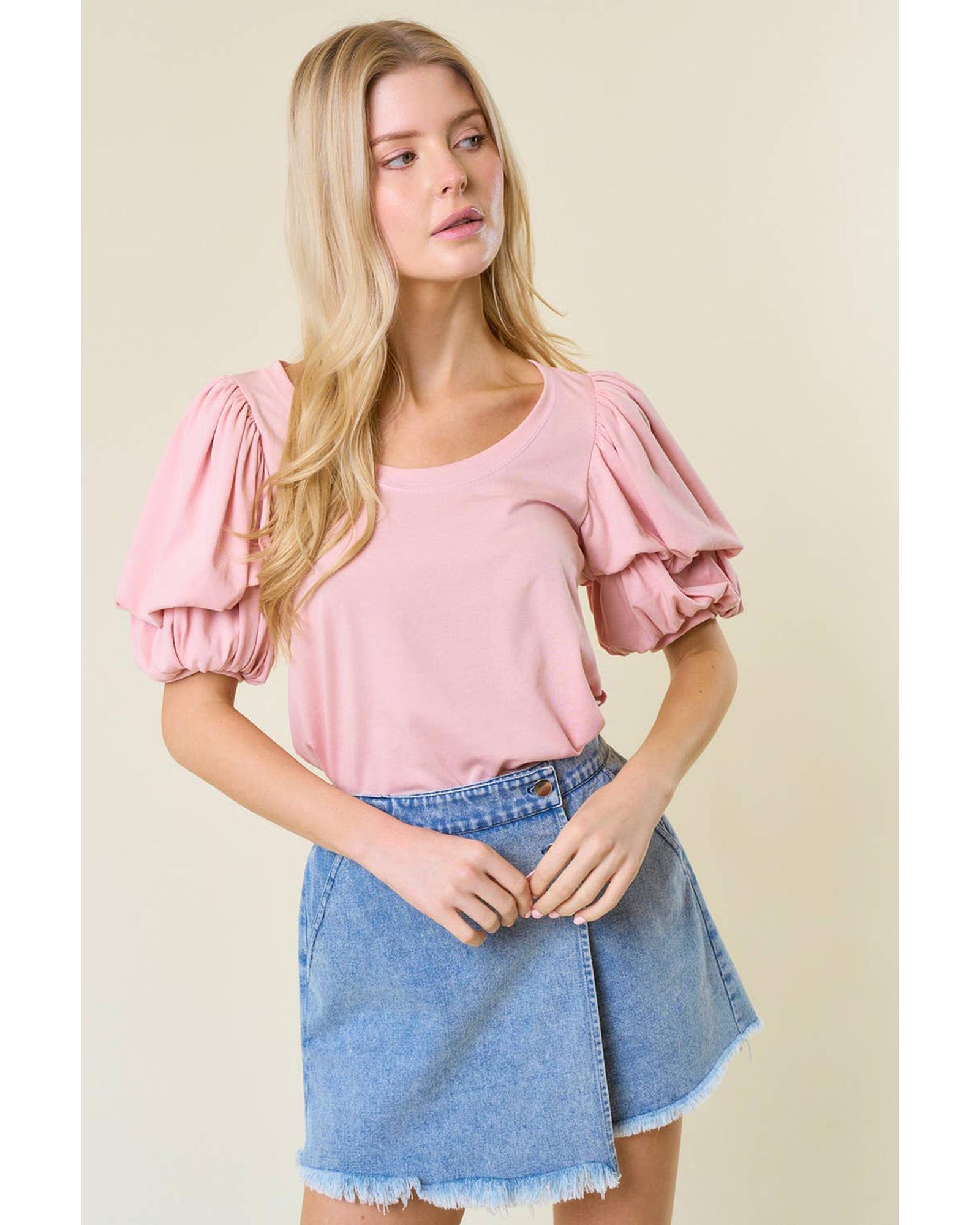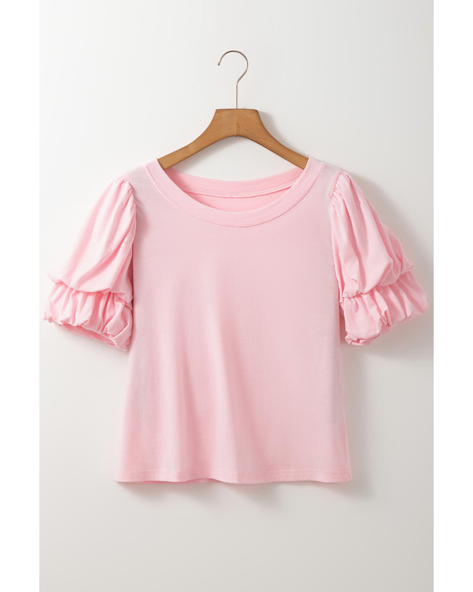 Light Pink Scoop Neck Bubble Sleeve Tee – S