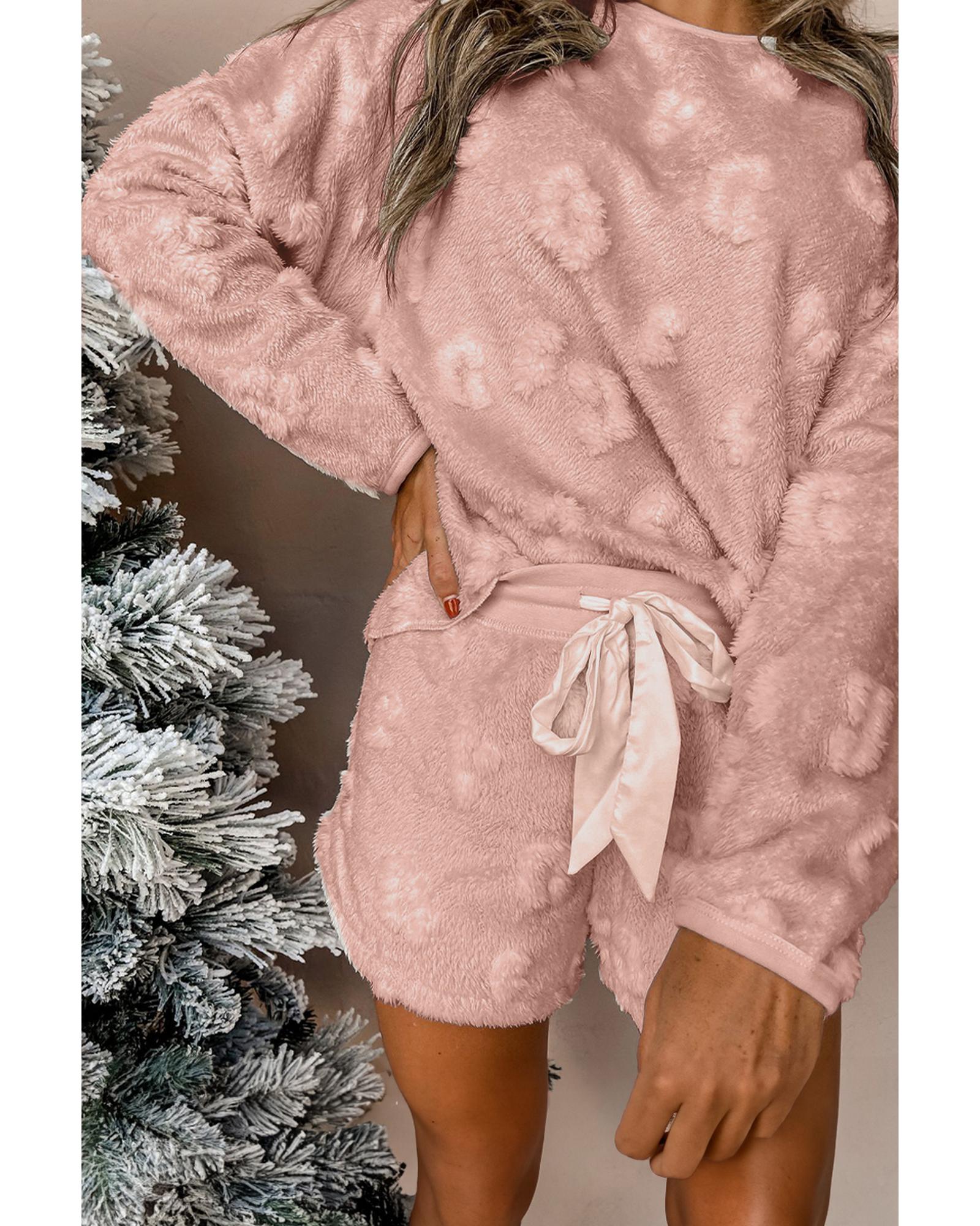 Light Pink Textured Leopard Fleece Loose Two Piece Lounge Set – 2XL