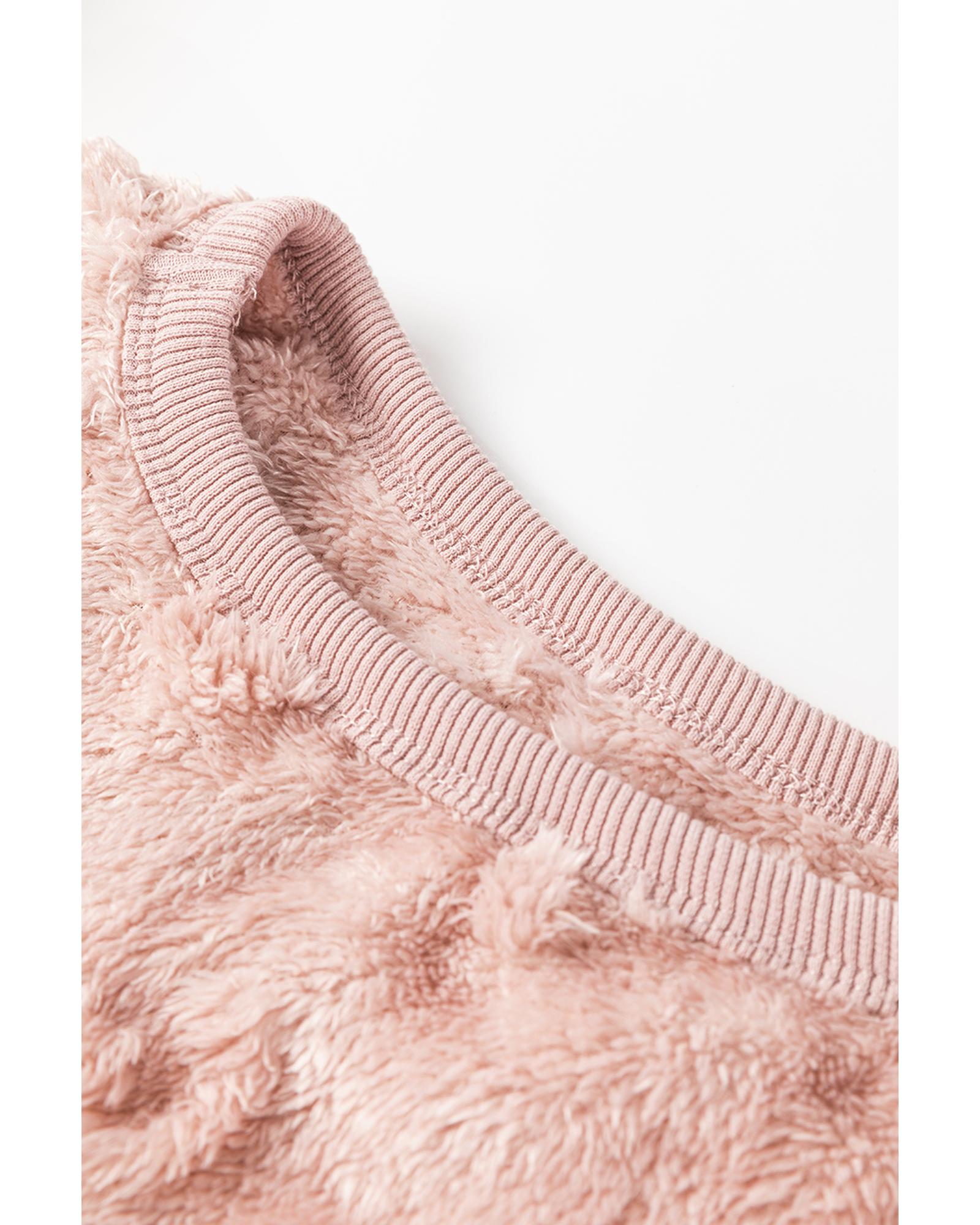 Light Pink Textured Leopard Fleece Loose Two Piece Lounge Set – L