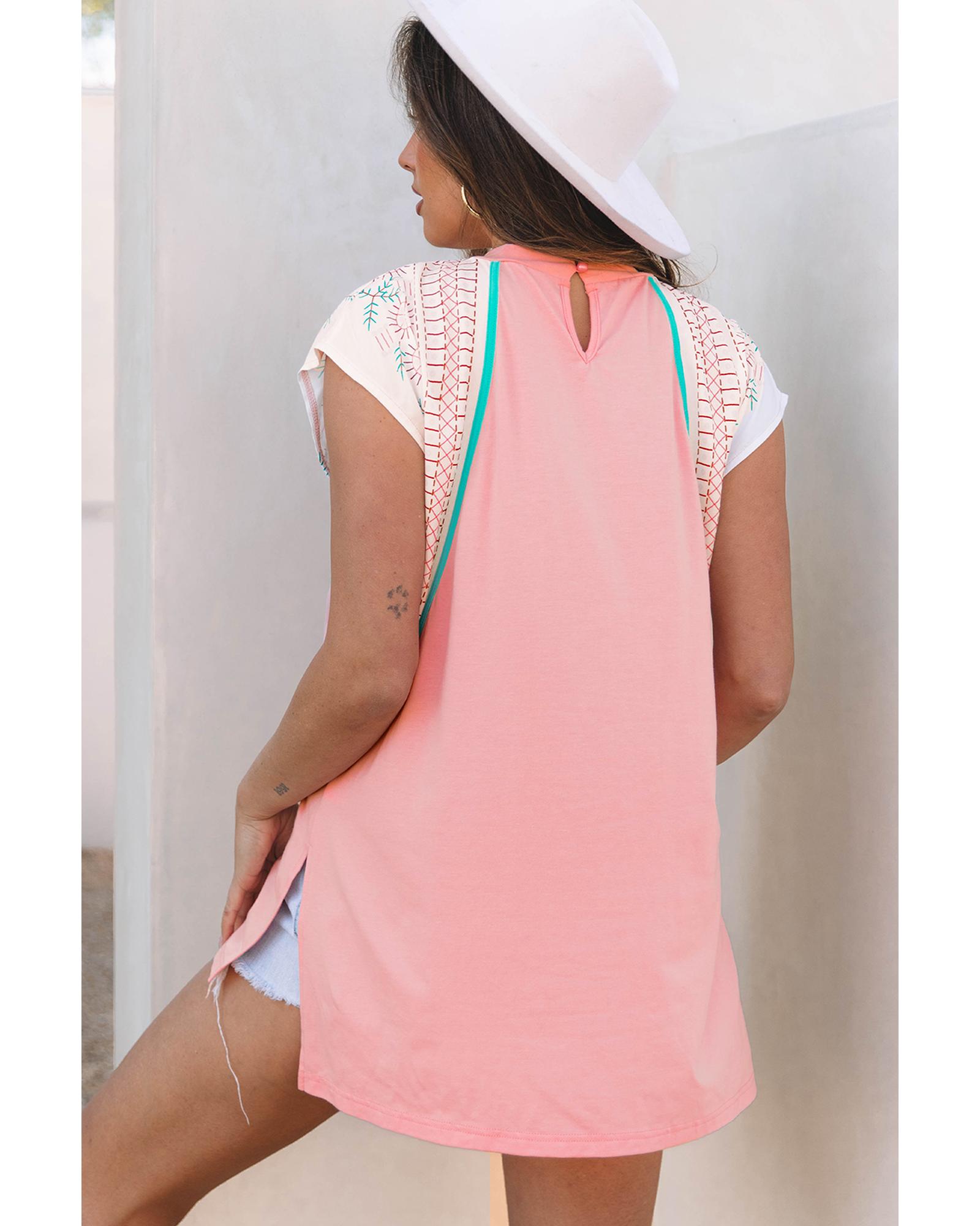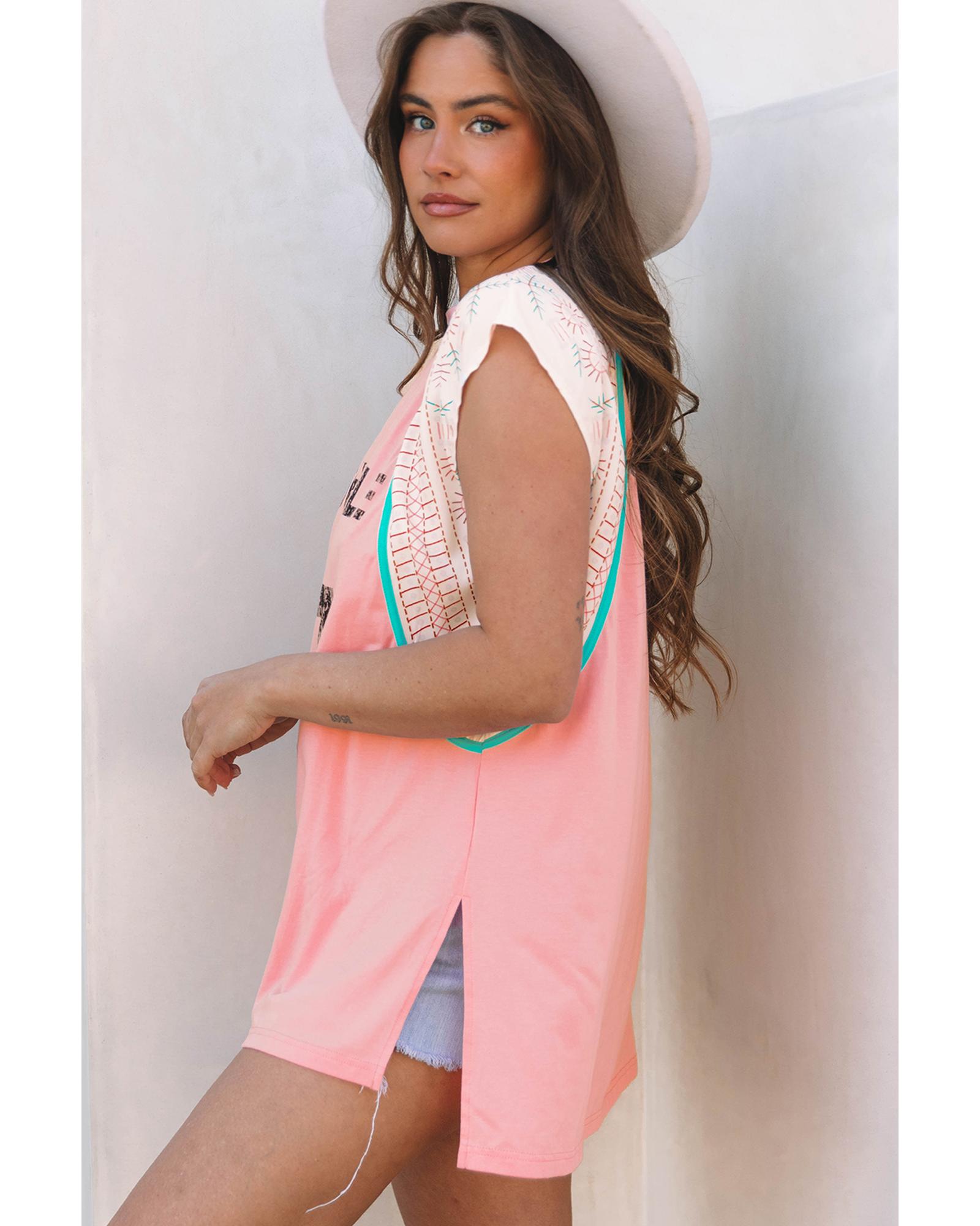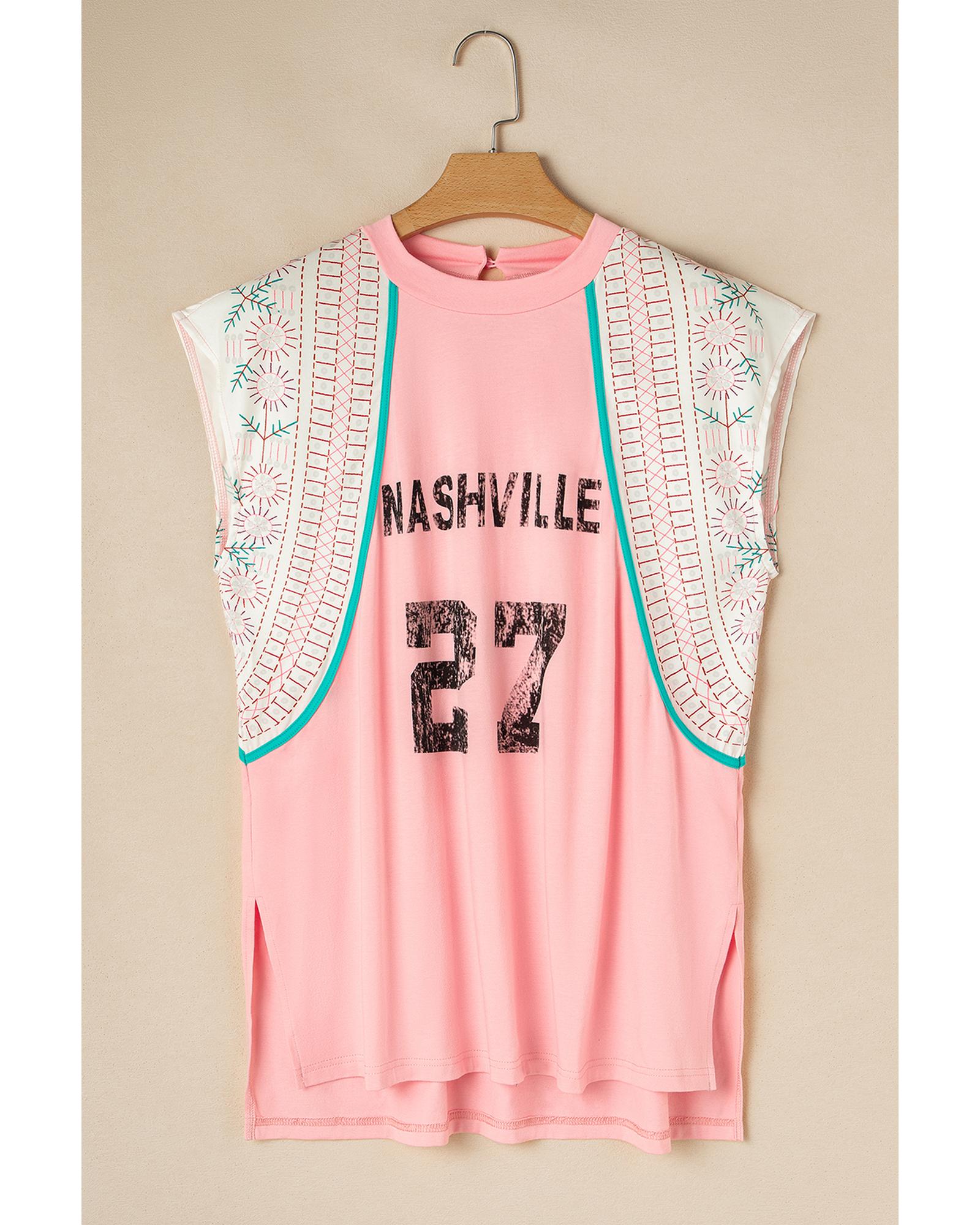 - Light Pink Vintage Nashville Printed Patchwork Tank Top