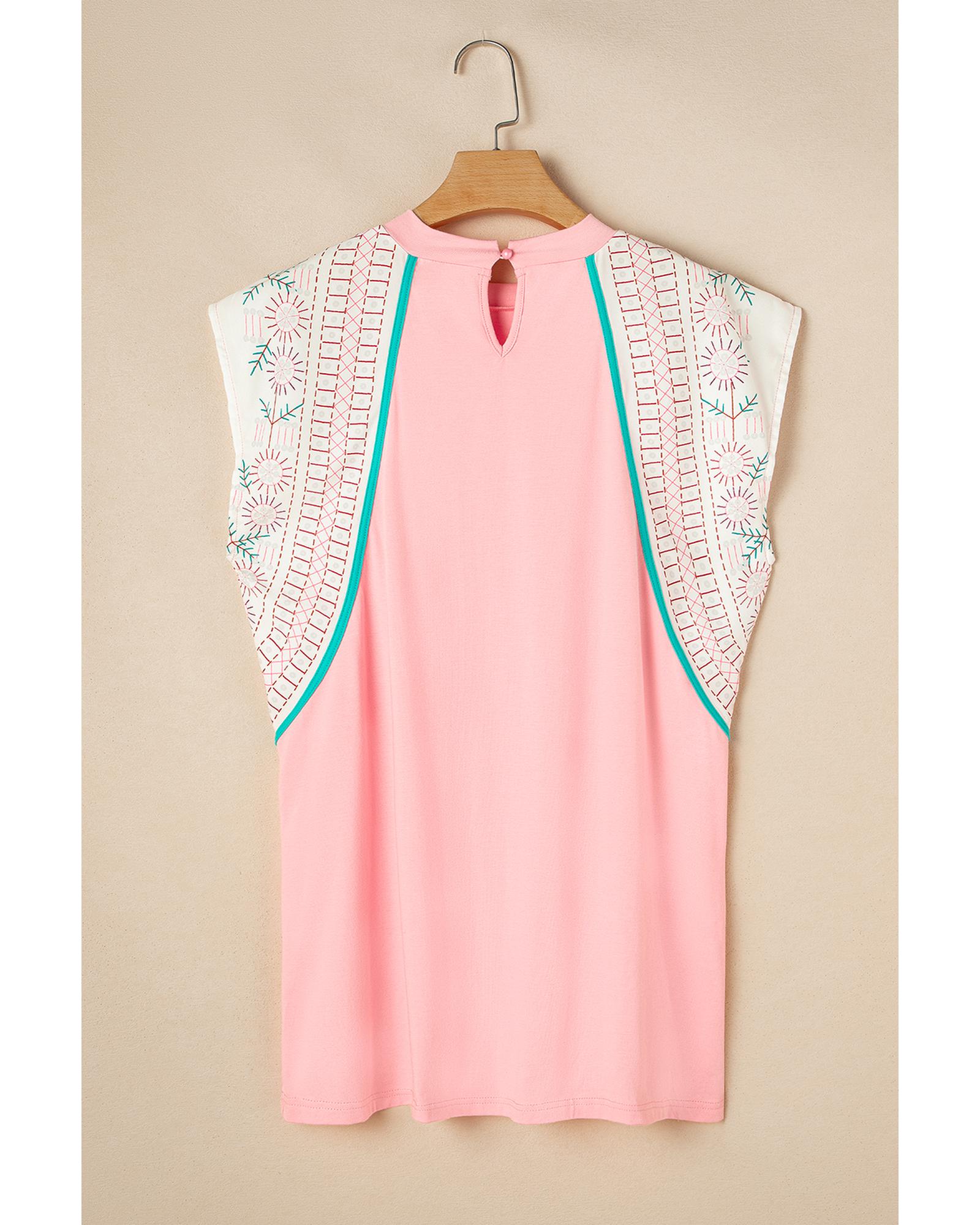 - Light Pink Vintage Nashville Printed Patchwork Tank Top