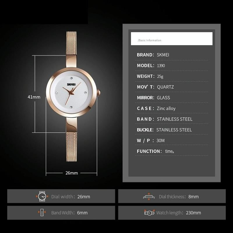 Lightweight Steel Band Women Quartz Watch – Business Casual – Rose Gold