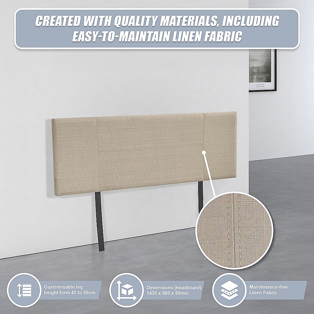 Linen Fabric Double Bed Headboard Bedhead – Beige