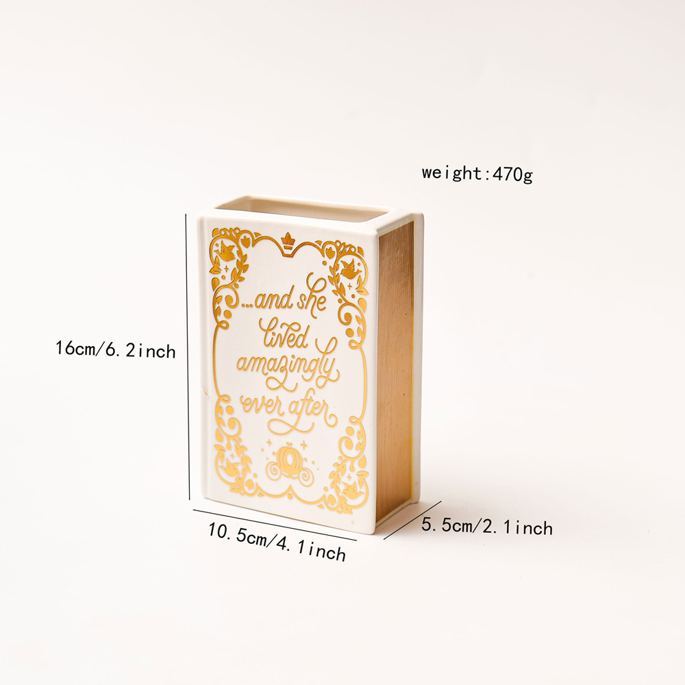 Literary Book Vase – Creative Ceramic Planter & Desk Organizer(Golden Book)