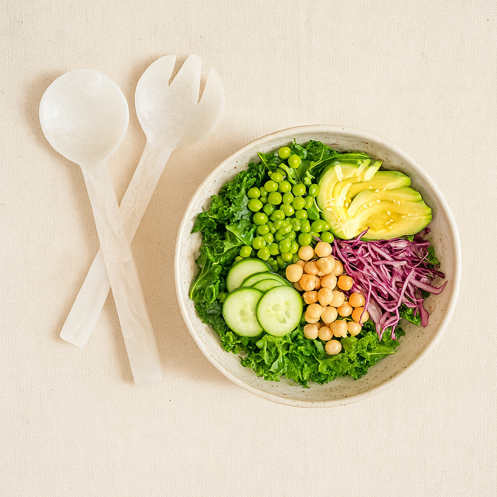 Serve in style with the Lorne White Resin Salad Server Set, handcrafted for those who appreciate clean design and everyday functionality. Each piece is hand-poured in India and finished with a smooth, polished surface that complements any table setting.