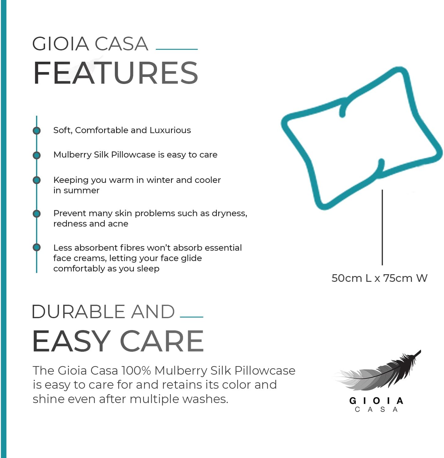 Gioia Casa Luxury Pillowcase – 100% Pure Mulberry Silk on Both Sides – Soft Anti-Wrinkle, Hypoallergenic, Washable Bed Pillowcases – Premium Pillow Cover for Hair and Skin Protection