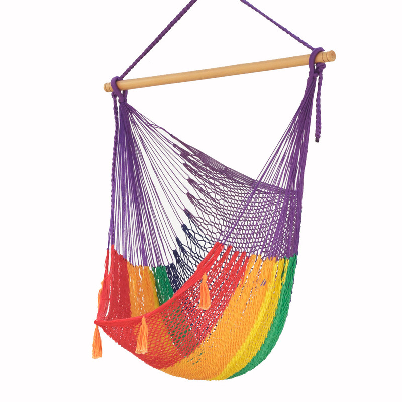 Mayan Legacy Extra Large Outdoor Cotton Mexican Hammock Chair in Rainbow Colour