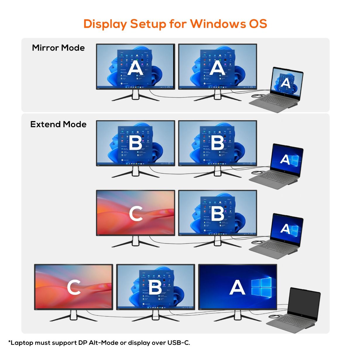 Windows OS supports MST, Mac OS only supports SST in USB-C Display Alt mode, MacBook (2020) with M1 CPU currently only supports 1 external monitor display.