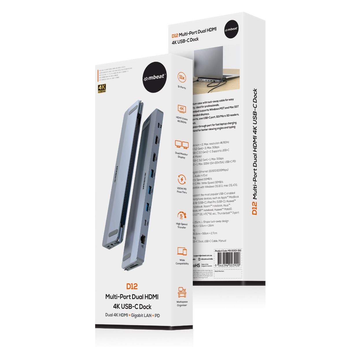 mbeat D12 Multi-Port Dual HDMI 4K USB-C Dock