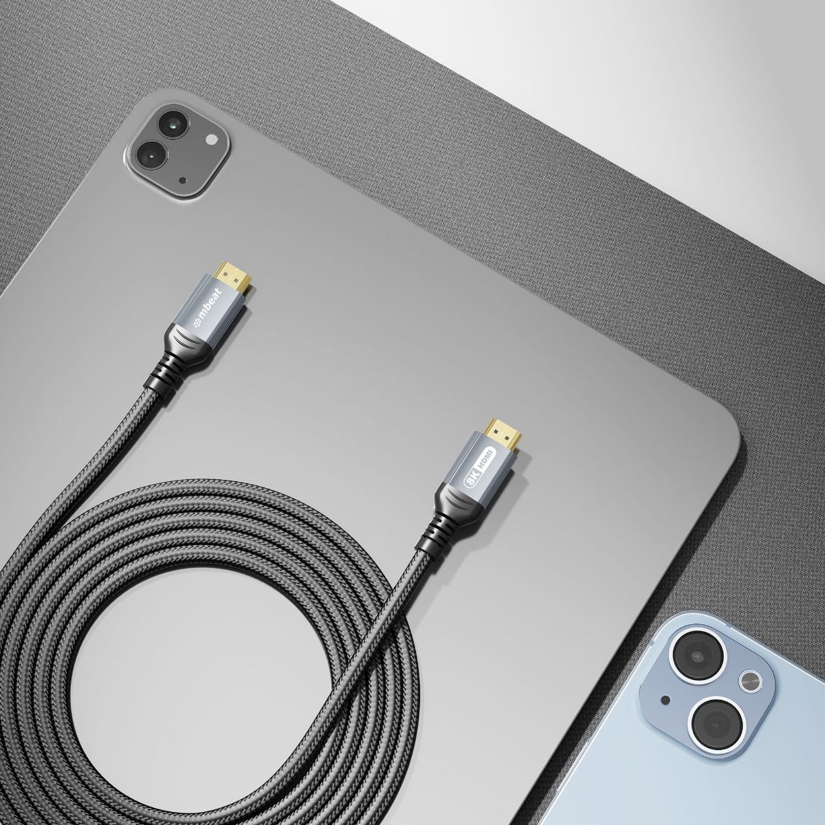 The mbeat Tough Link Certified 8K HDMI 2.1 cable provides stunning visuals and smooth performance for gaming and entertainment. With broad device compatibility and a durable, reliable design, it ensures seamless, high-quality connections for all your HDMI-enabled devices.