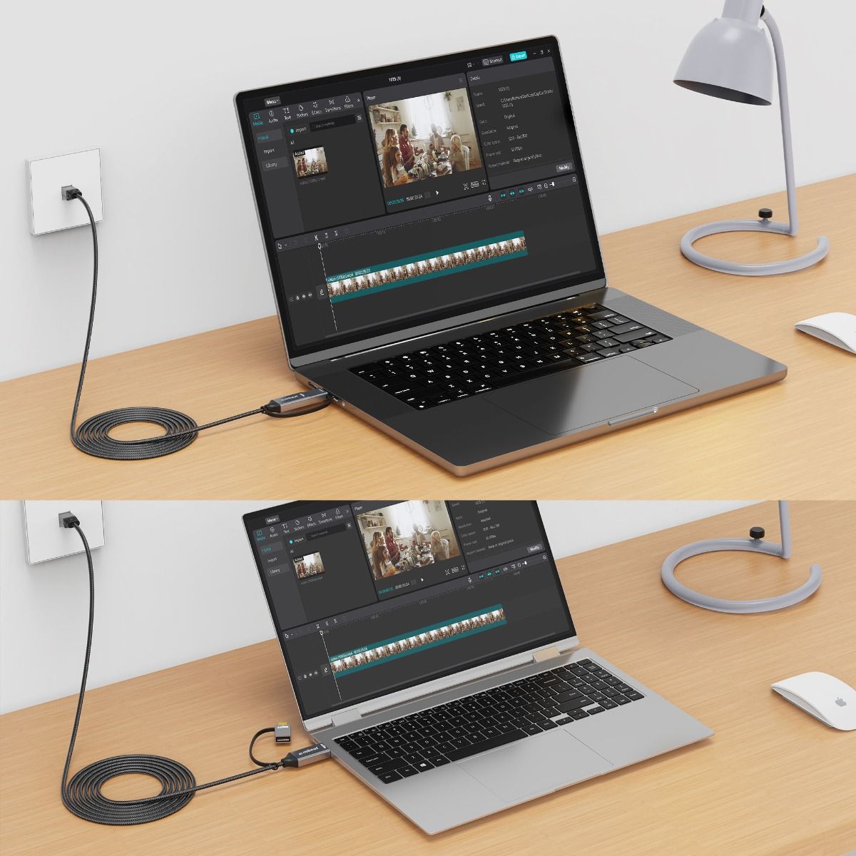 Equipped with USB-A and USB-C connectors, this versatile adapter ensures compatibility with both traditional USB and modern USB-C devices, making it ideal for laptops, PCs, and other host devices.