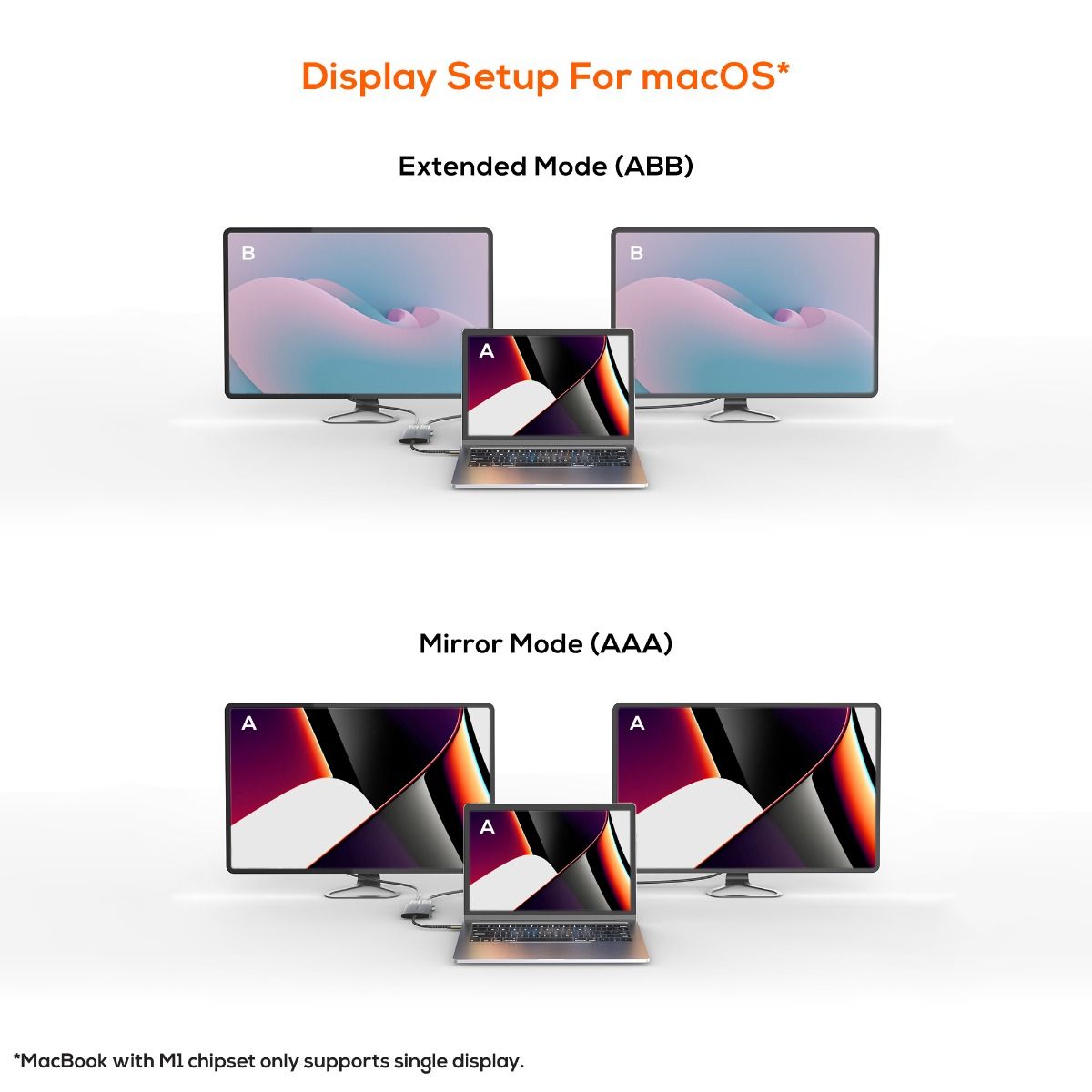 MacBook with M1 chipset only supports single display.